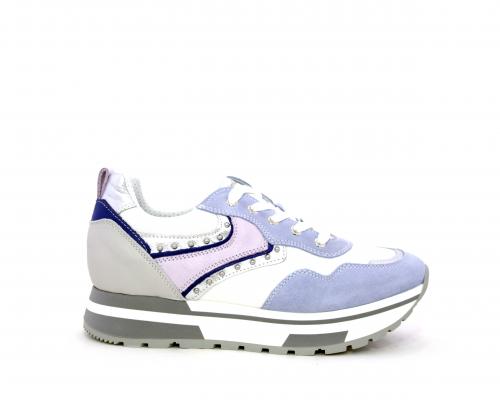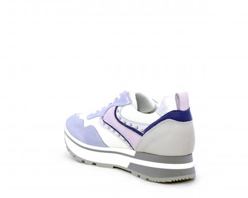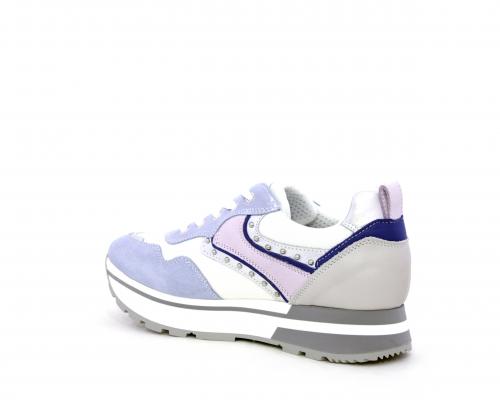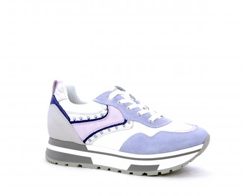 Sneakers allacciata in nabuk con inserti in pelle, sottopiede e fodera in pelle, plantare estraibile con sistema DryGo, che assorbe l'umidità quando la calzatura è indossata e si asciuga rapidamente quando si toglie la scarpa