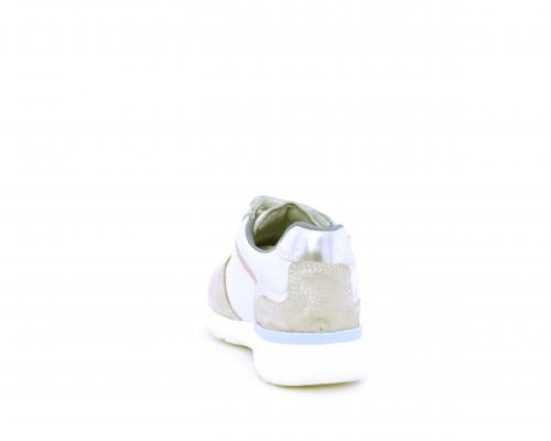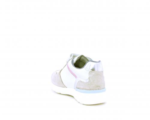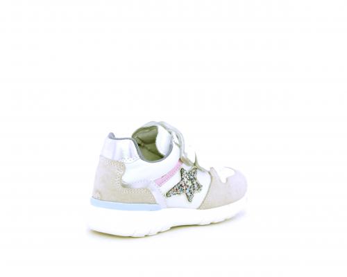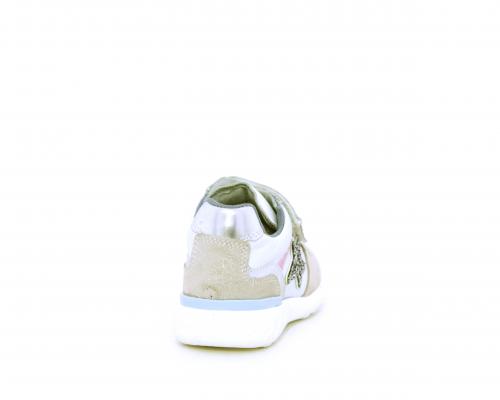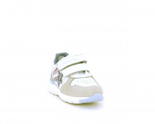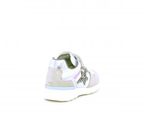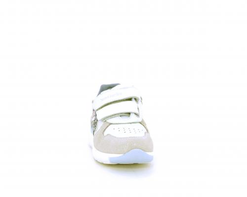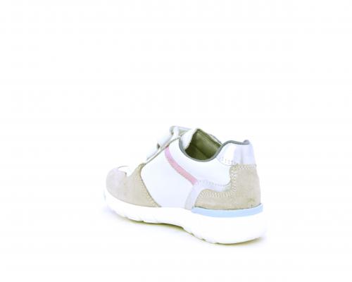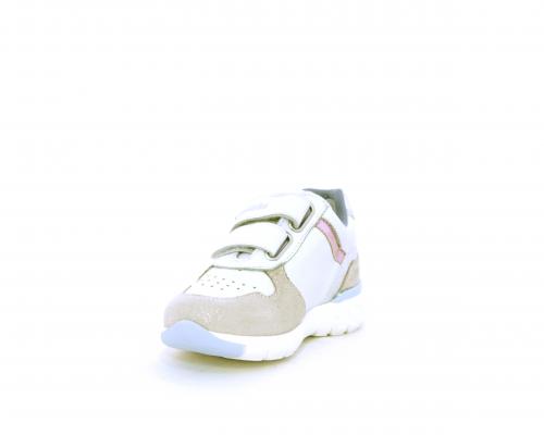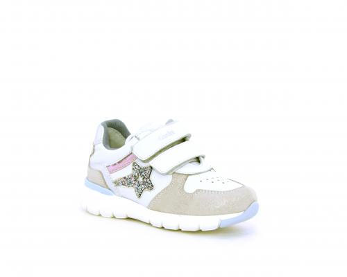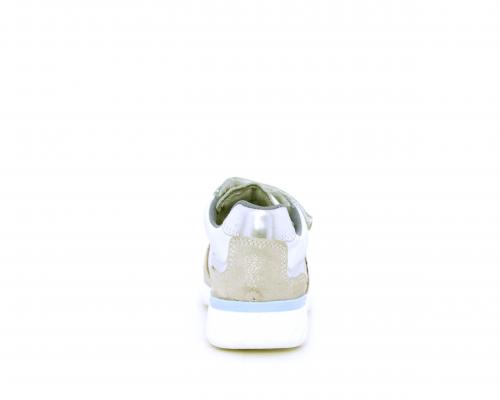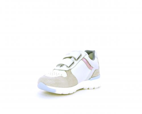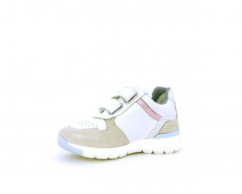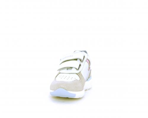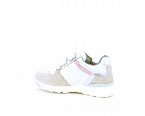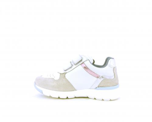 Sneakers primi passi bambina con doppio velcro, in pelle con inserti colorati in pelle e camoscio, sottopiede e fodera in pelle