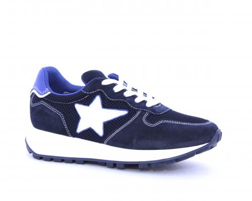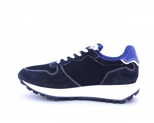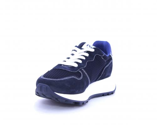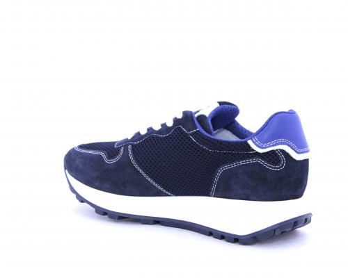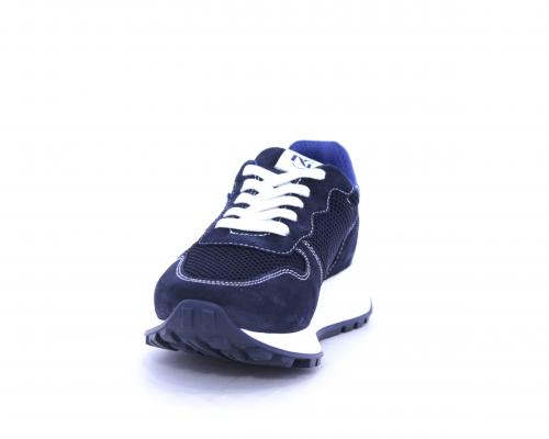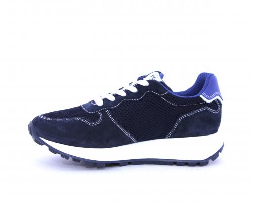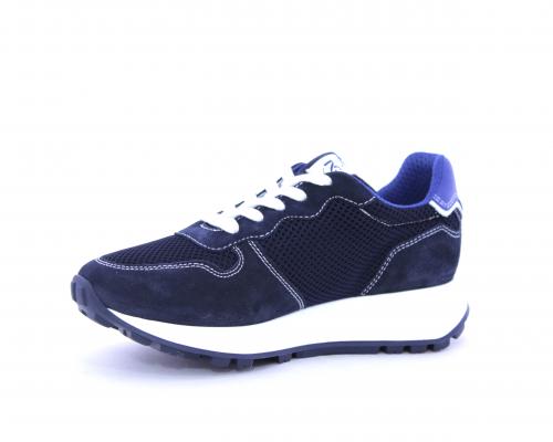 Sneakers allacciata in nabuk e tessuto, sottopiede e fodera in pelle, intorno al tallone cuscinetto morbido in tessuto