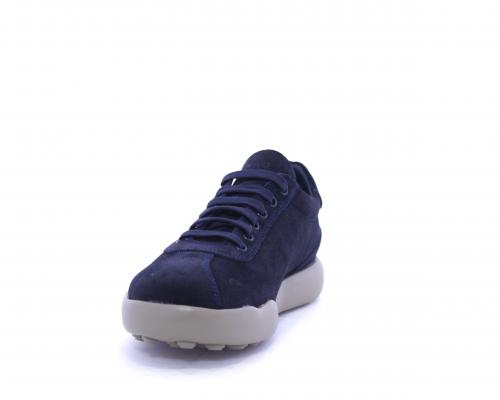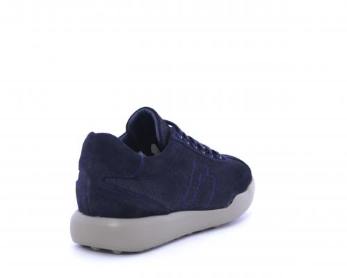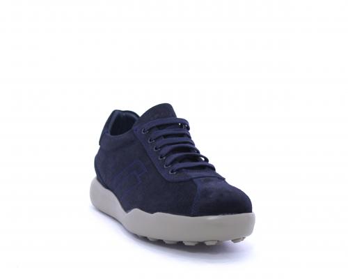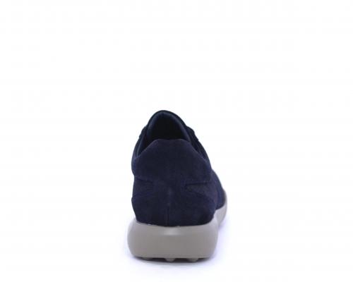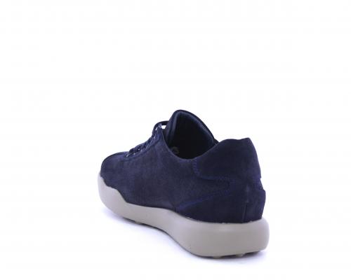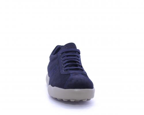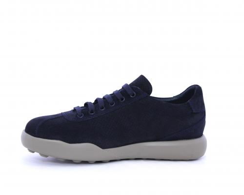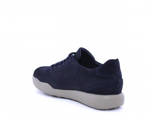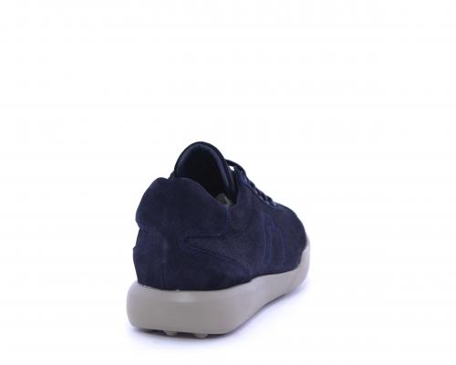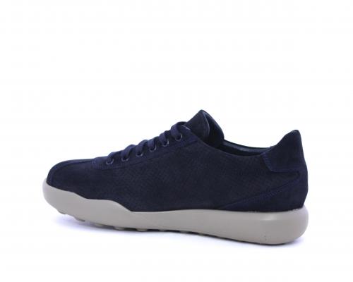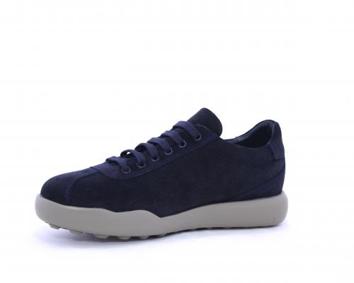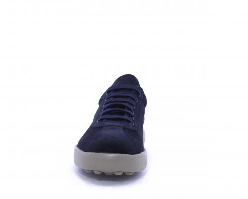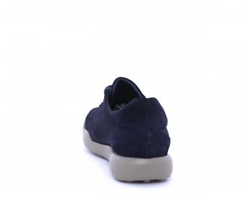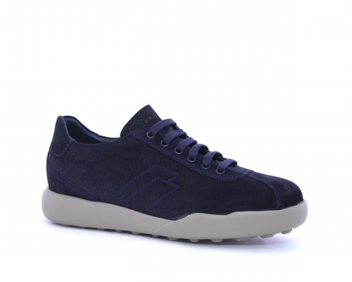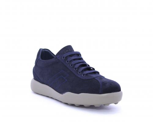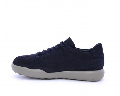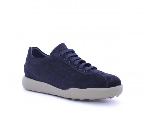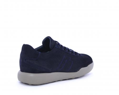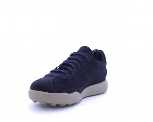 Sneakers allacciata in nabuk, con doppio laccio in dotazione uno blu e uni beige, sottopiede in pelle, fodera in pelle e tessuto, plantare estraibile