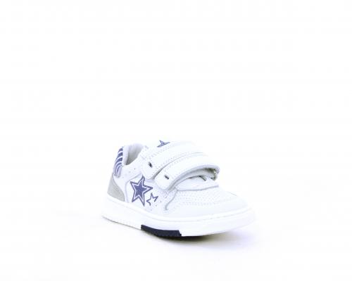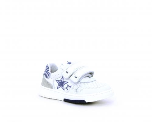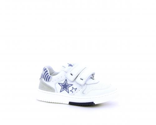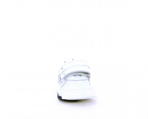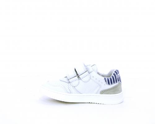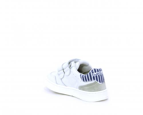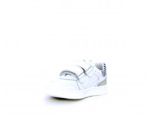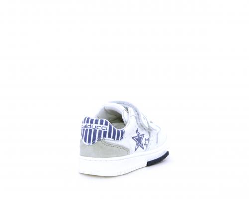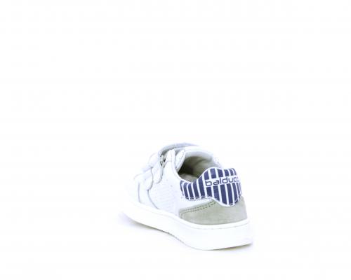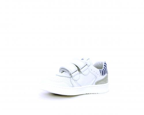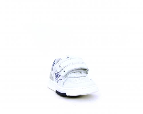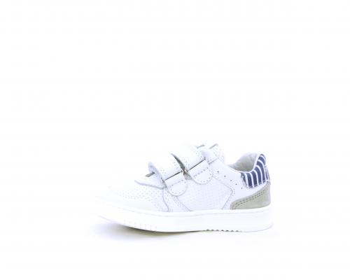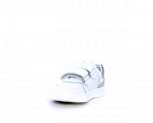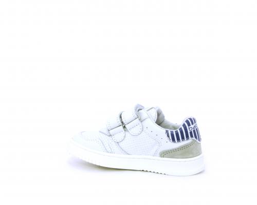 Sneakers in doppio velcro, in pelle con inserti in nabuk dietro al tallone, sottopiede e fodera in pelle, planatre estraibile