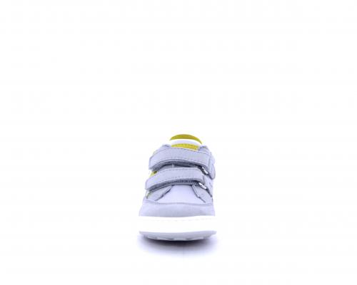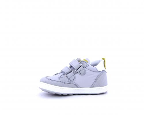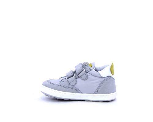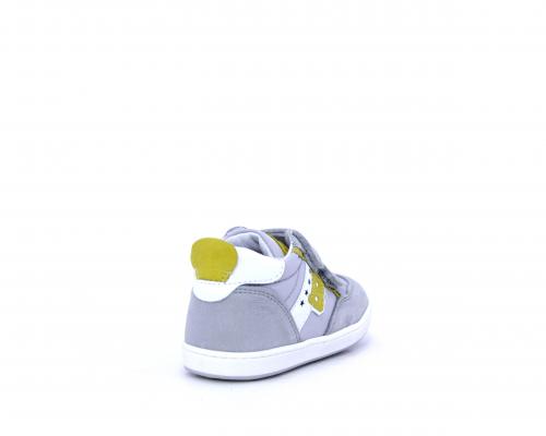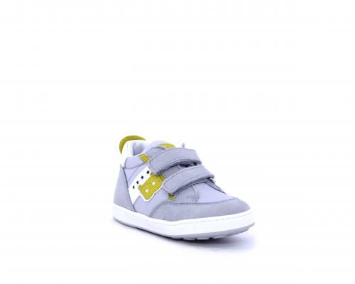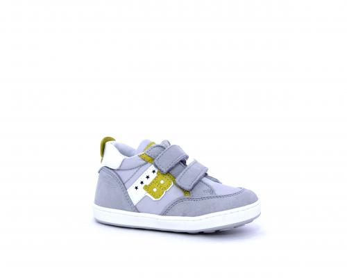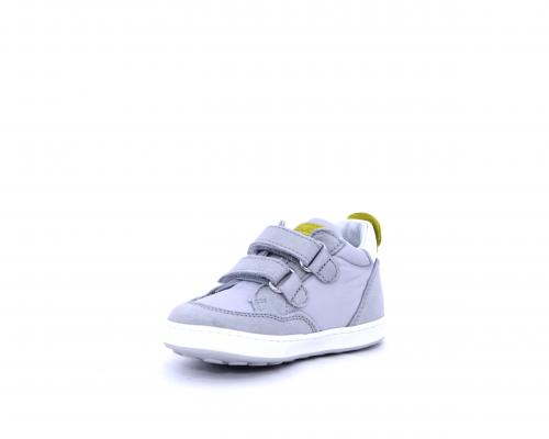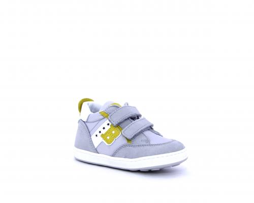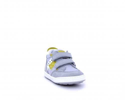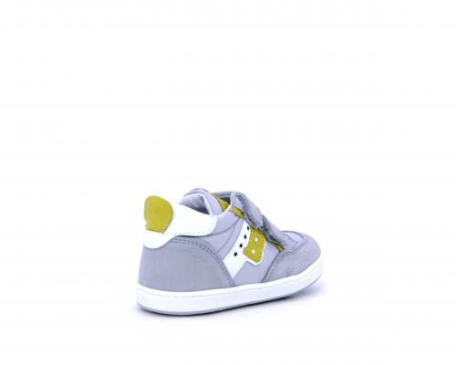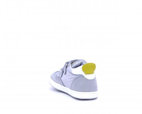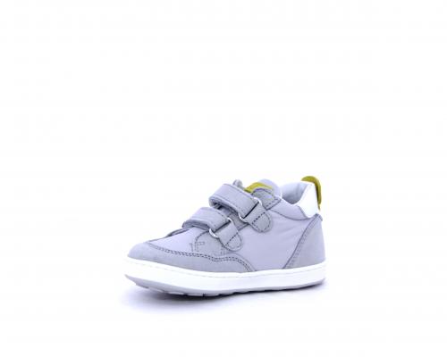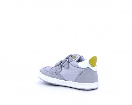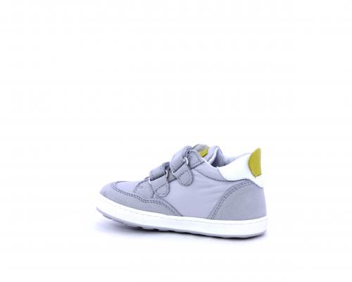 Sneakers con doppio velcro in nabuk e tessuto, realizzata con pellami certificati metal free, soletta traspirante in aloe vera, fondo flessibile e il supporto plantare anatomico in vera pelle