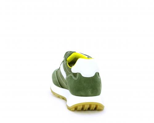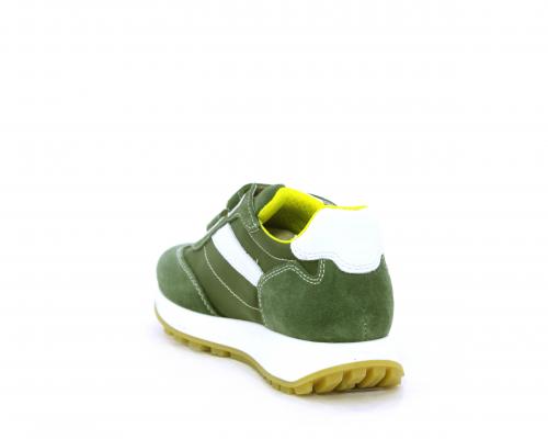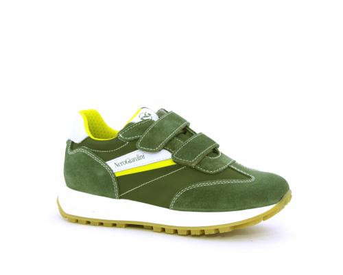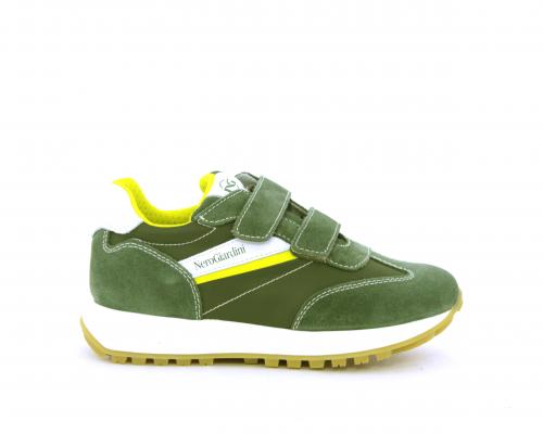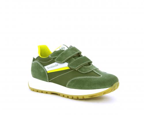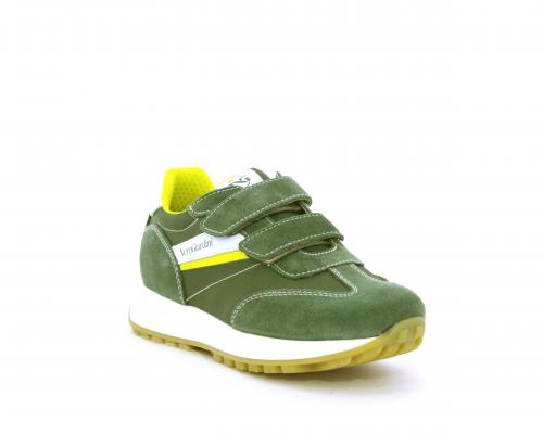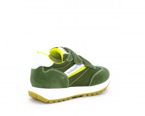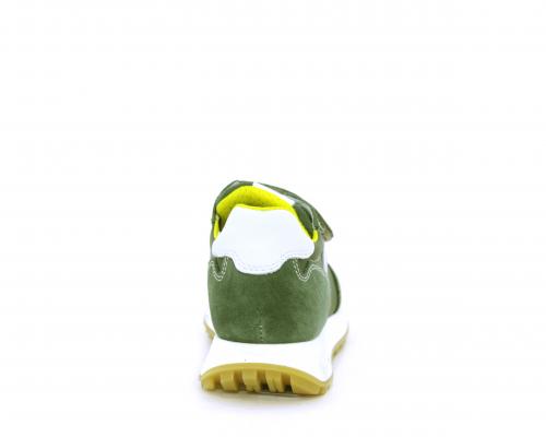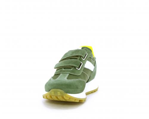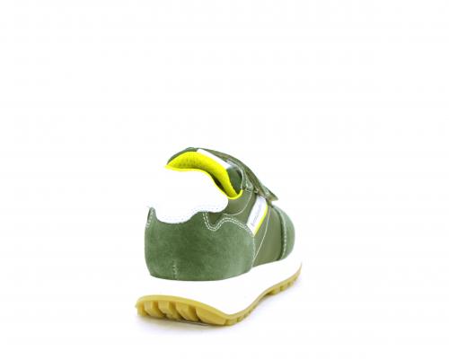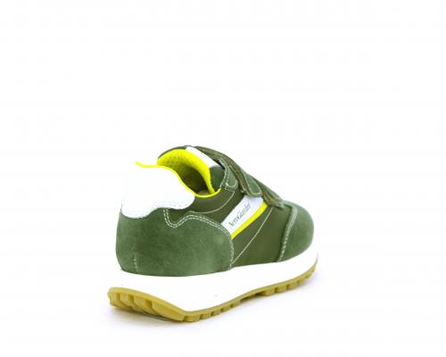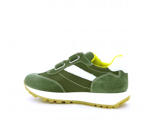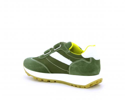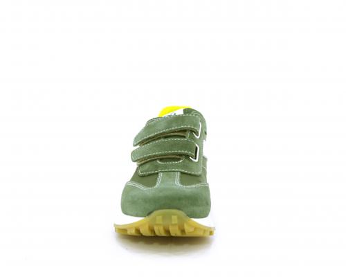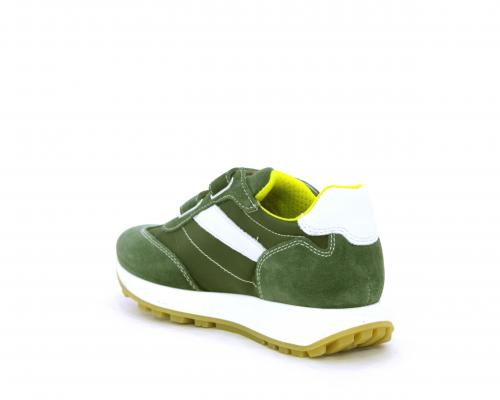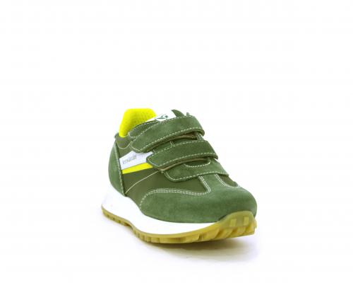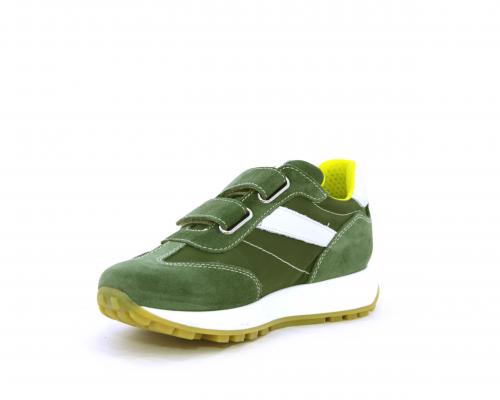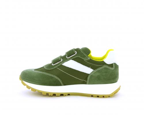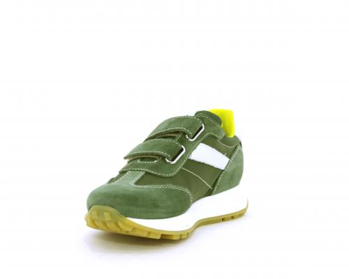 Sneakers bambino in nabuk e tessuto con doppio velcro, sottopiede e fodera in pelle, nella parte intorno alla caviglia cuscinetti in tessuto per rendere la scarpa più confortevole