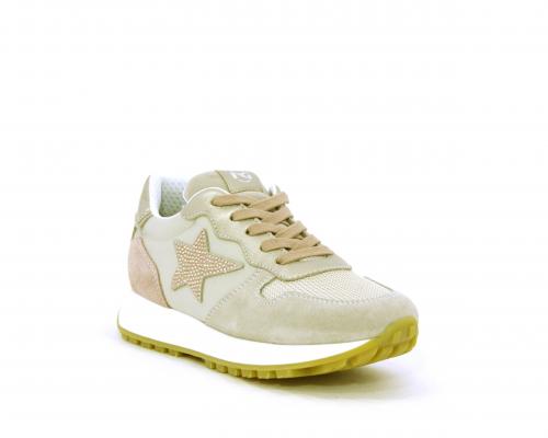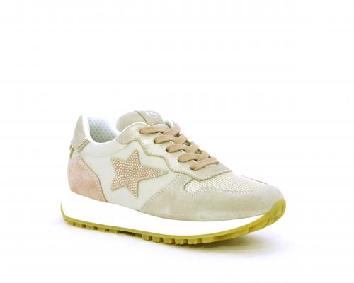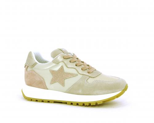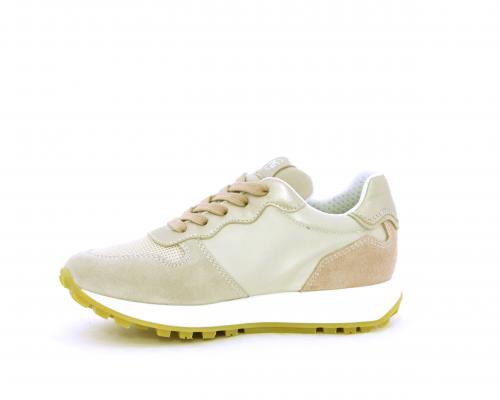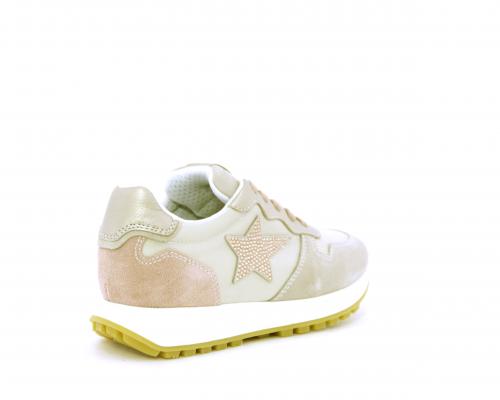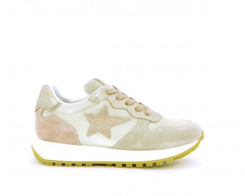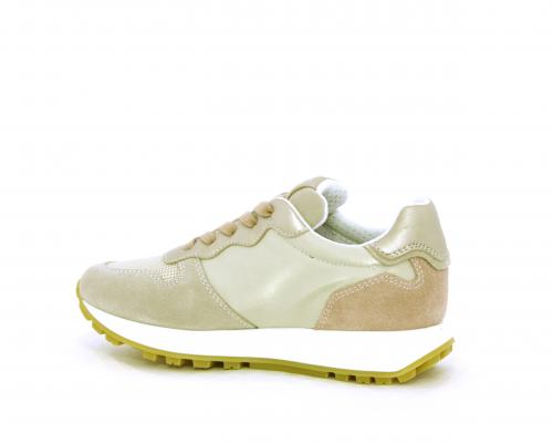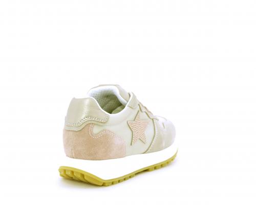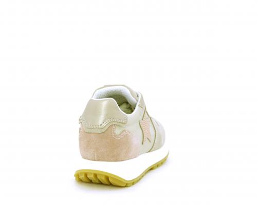 Sneakers bambina con lacci, sottopiede e fodera in pelle, nella parte intorno alla caviglia cuscinetti in tessuto per rendere la scarpa più confortevole