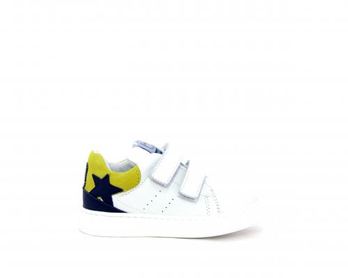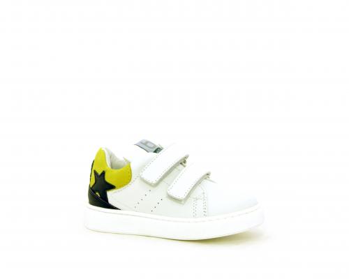 Sneakers bambino in pelle con doppio velcro, sottopiede e fodera in pelle, fusbet estraibile all'aloe, anatomico e antibatterico