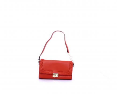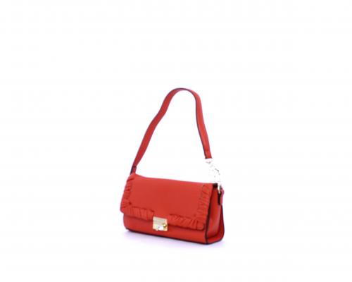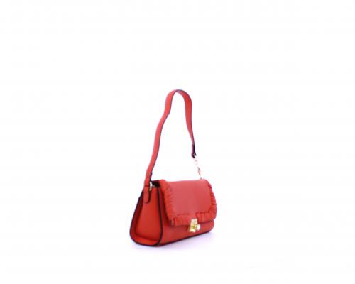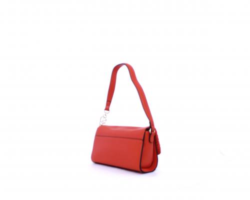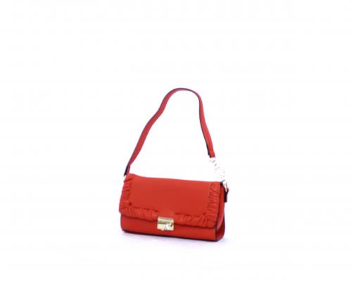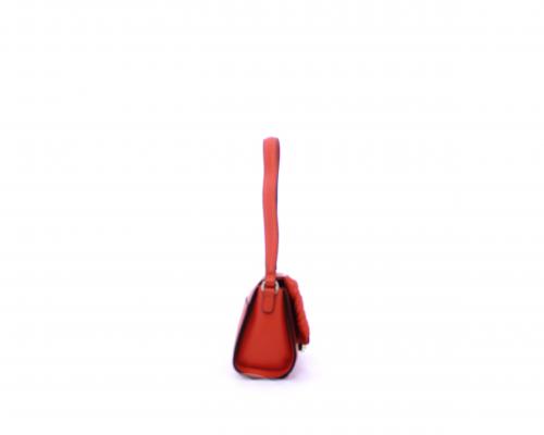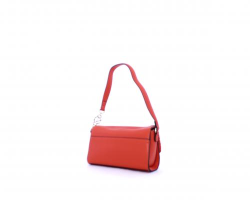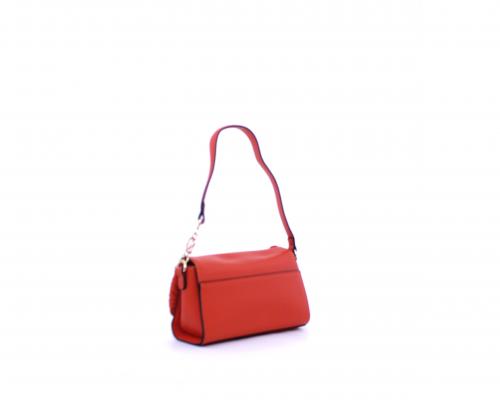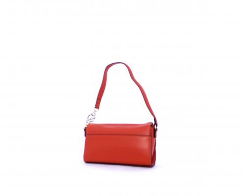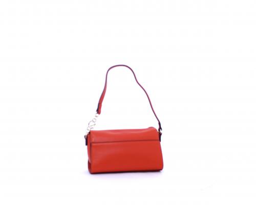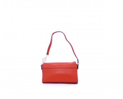 Borsa monospalla con possibilità di aggiungere la tracolla in pelle regolabile, chiusura con zip ribalta chiusa a scatto, interno in tessuto con due taschini uno chiuso con la zip e un taschino aperto.
