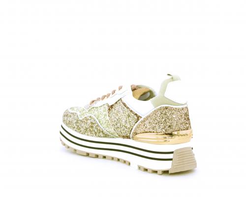 Sneakers allacciate in lurex con platform in gomma, sottopiede e fodera interna in tessuto, fusbet estaribile