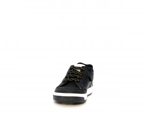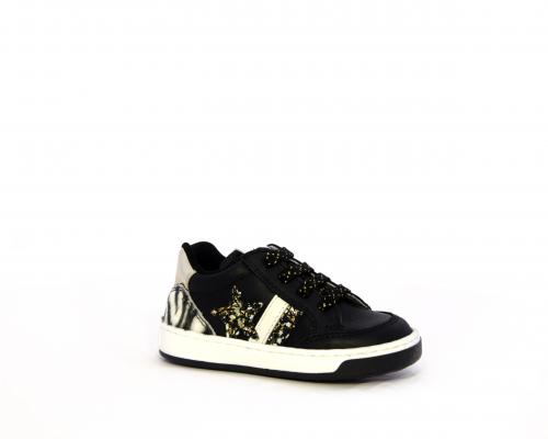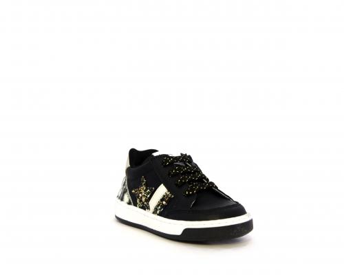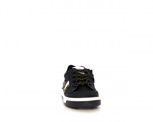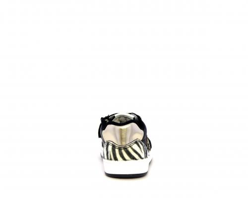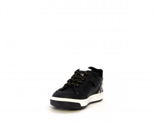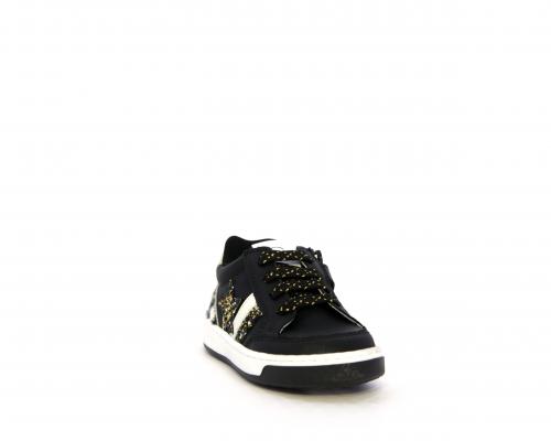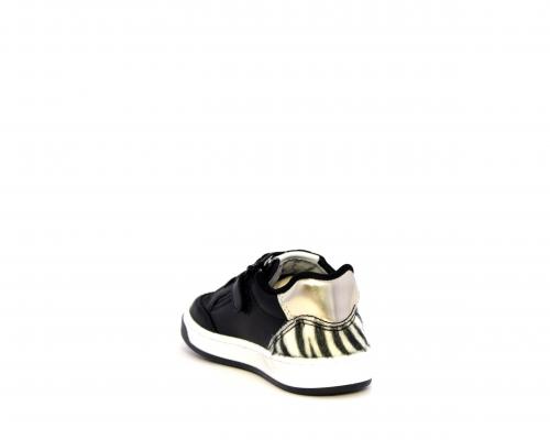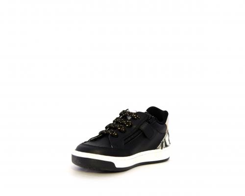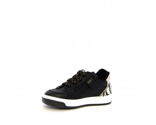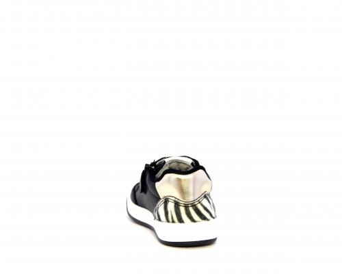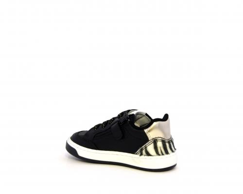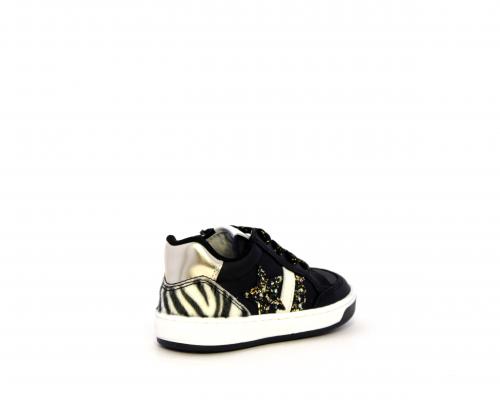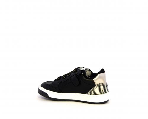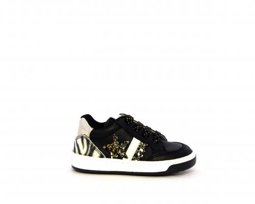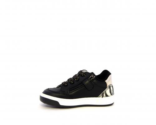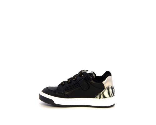 Sneakers per i primi passi bambina, in pelle con inserti glitterati e in tessuto, con lacci e chiusura laterale per facilitare la calzata, sottopiede e fodera in pelle, fusbet estraibile