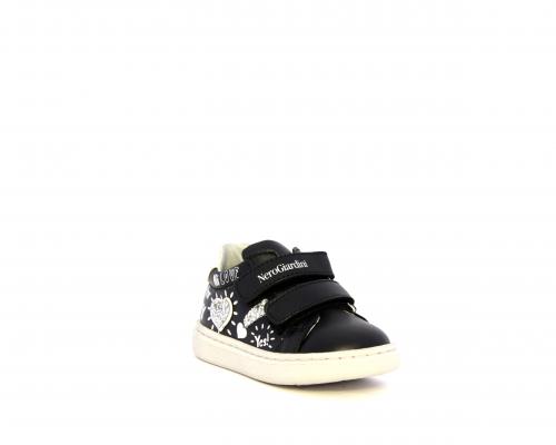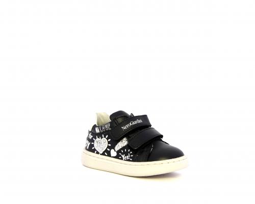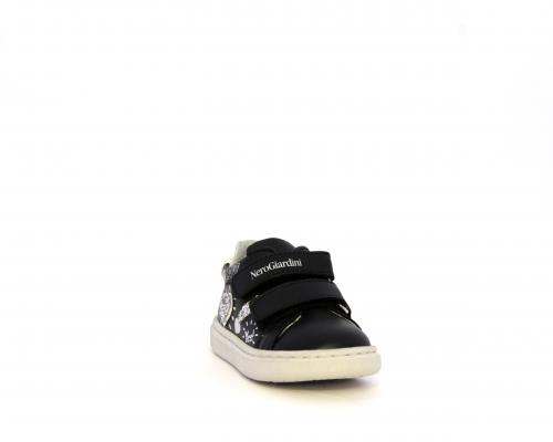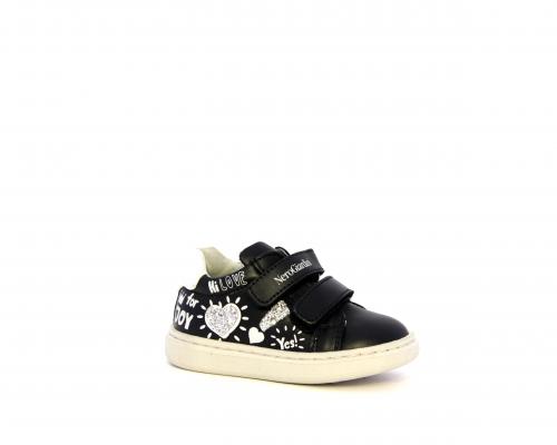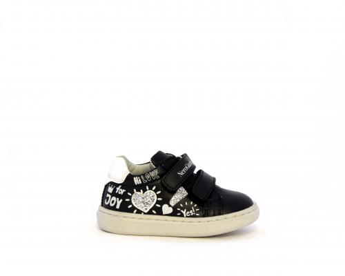 Sneaakers primi passi da bambina in pelle con inserti glitterati, con doppio velcro, sottopiede e fodera in pelle, fusbet estraibili