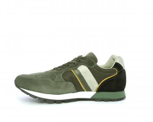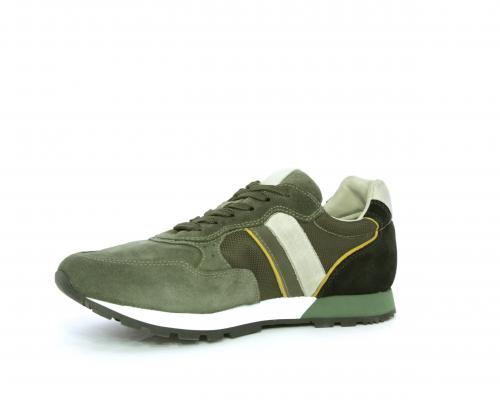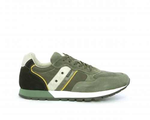 Sneakers uomo allacciata in camoscio e tessuto, sottopoiede e fodera in pelle, fusbet estraibile con sistema DryGo, che assorbe l'umidità quando si indossa la scarpa e si asciuga rapidamente quando si toglie la calzatura