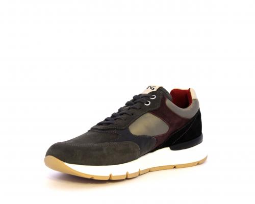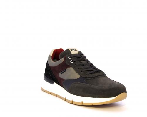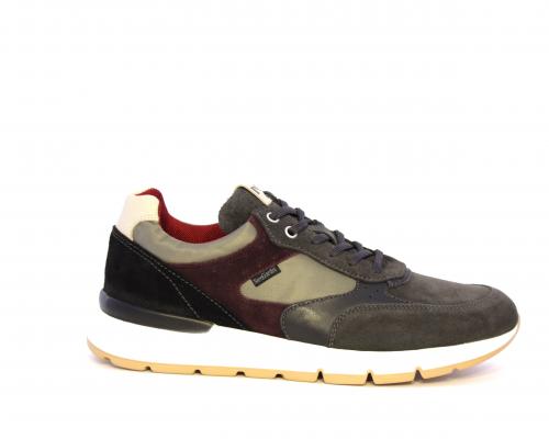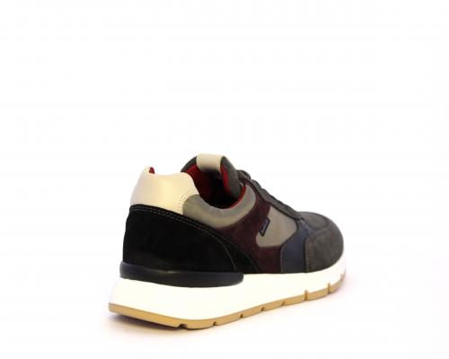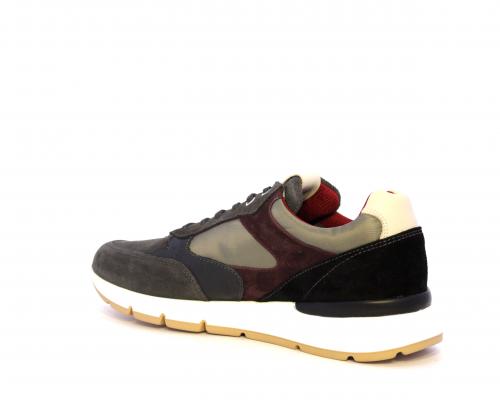 Sneakers uomo allacciata in camoscio e tessuto, sottopoiede e fodera in pelle, fusbet estraibile con sistema DryGo, che assorbe l'umidità quando si indossa la scarpa e si asciuga rapidamente quando si toglie la calzatura