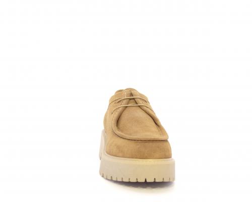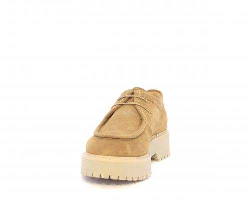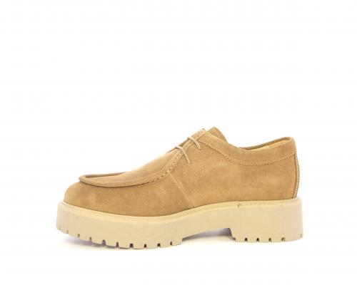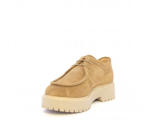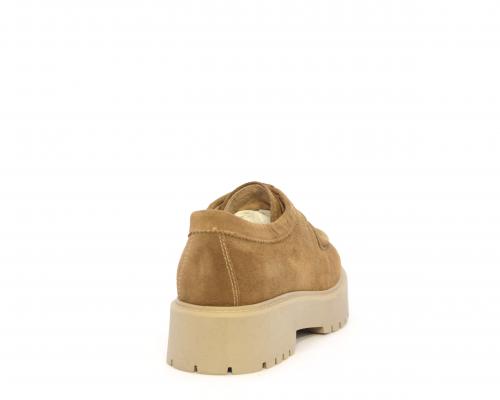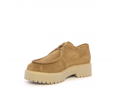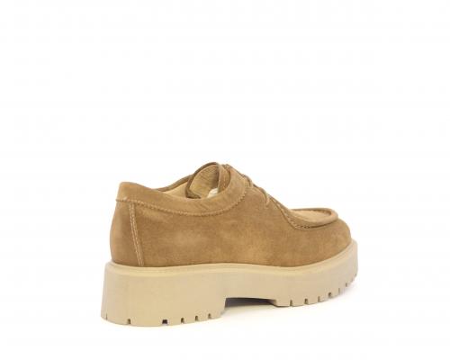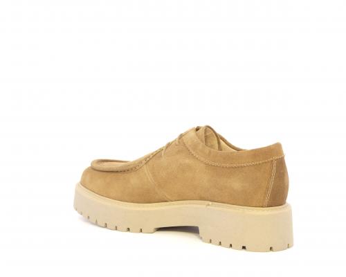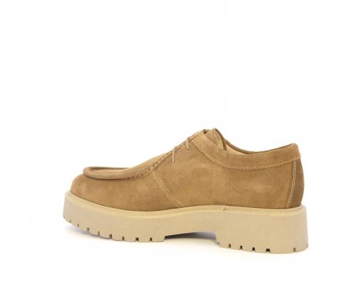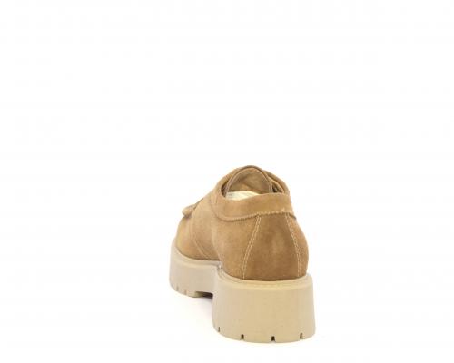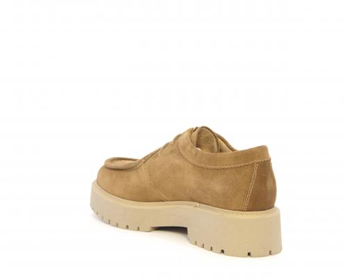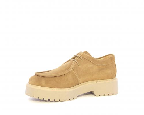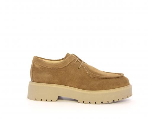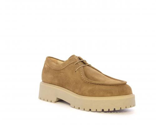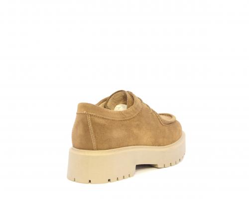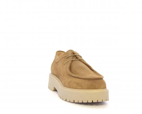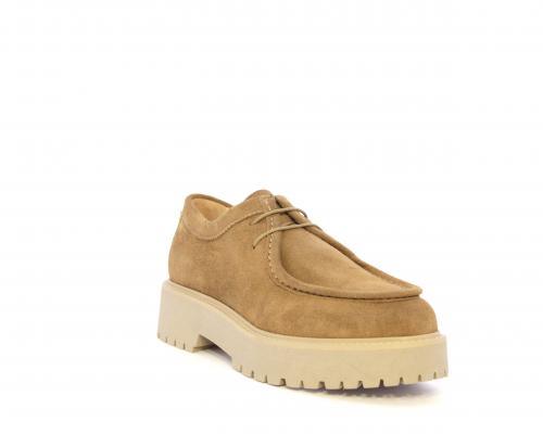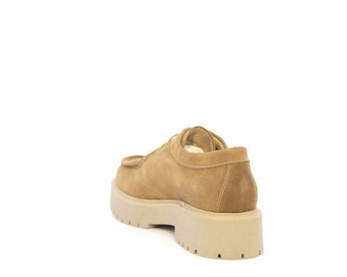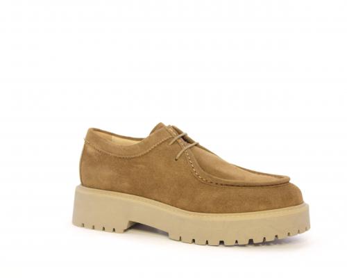 Mocassino allacciato in camoscio, sottopiede e fodera in pelle, plantare con memory.