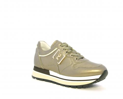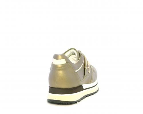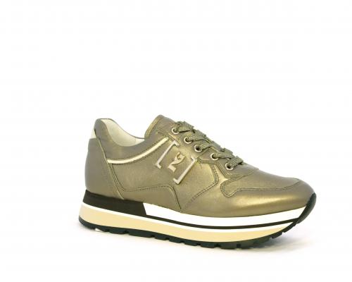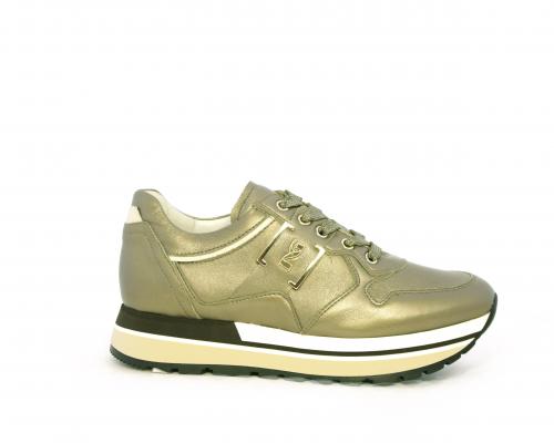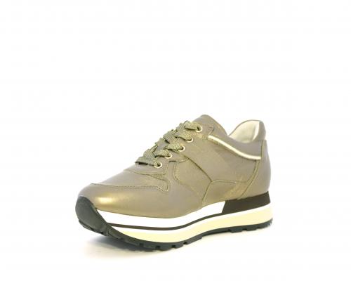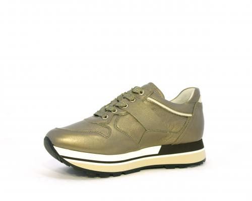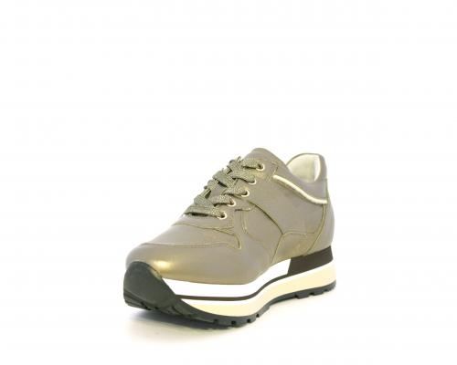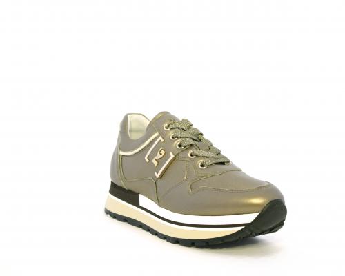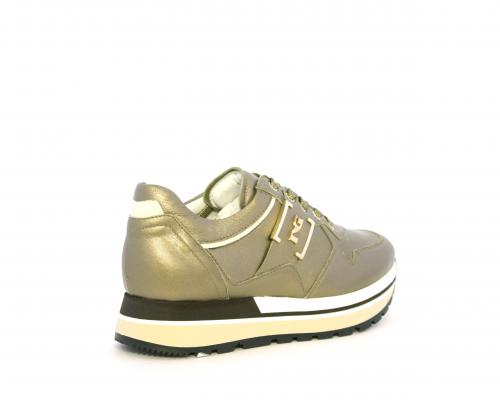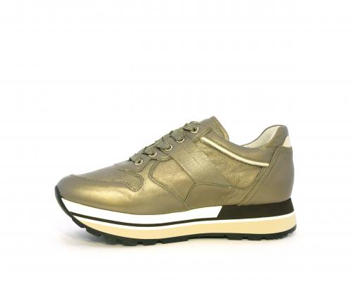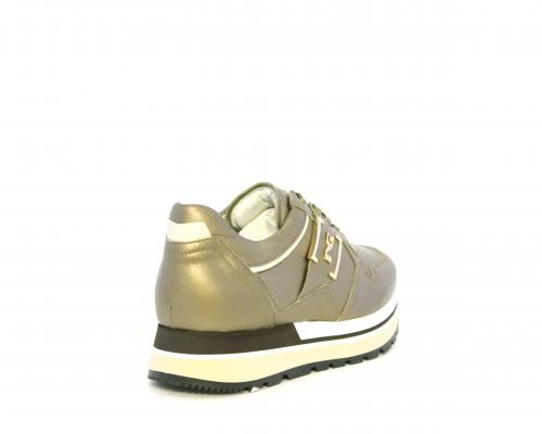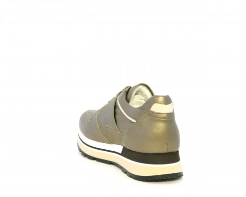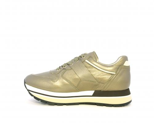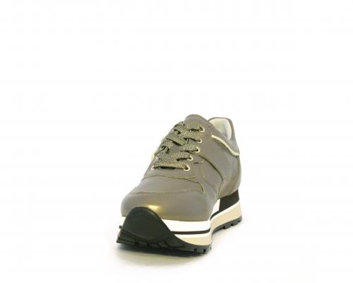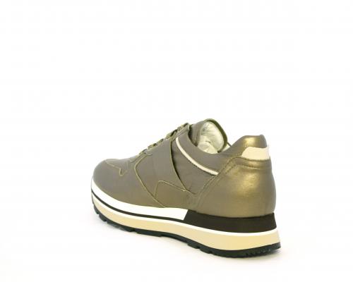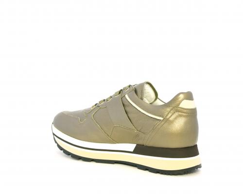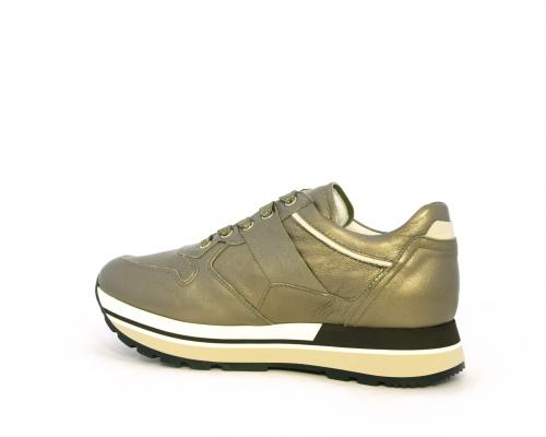 Sneakers in pelle allacciata con platform in gomma bicolore, inserti color platino, sottopiede e fodera in pelle, fusbet estraibile con sistema DryGo, che assorbe l'umidità quando la scarpa è indossata e una volta tolta la calzatura si asciuga rapidamente