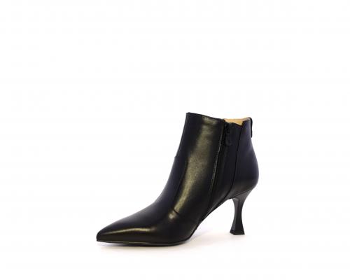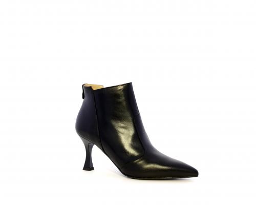 Tronchetto in pelle con tacco a rocchetto, sottopiede e fodera in pelle,