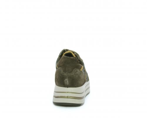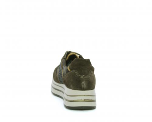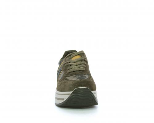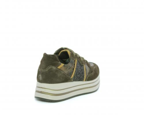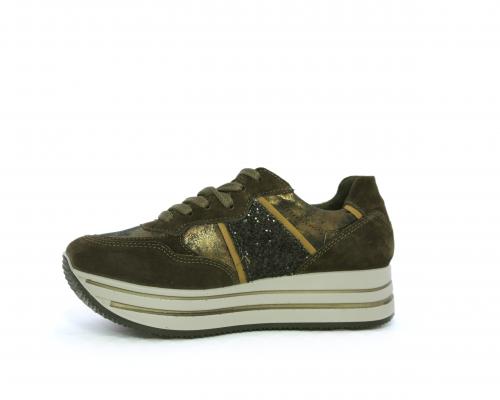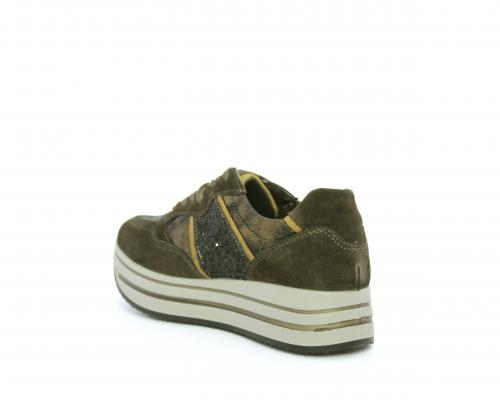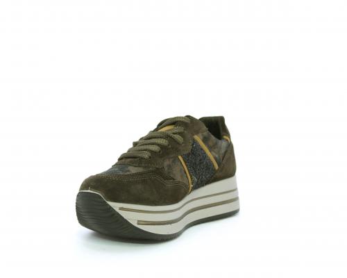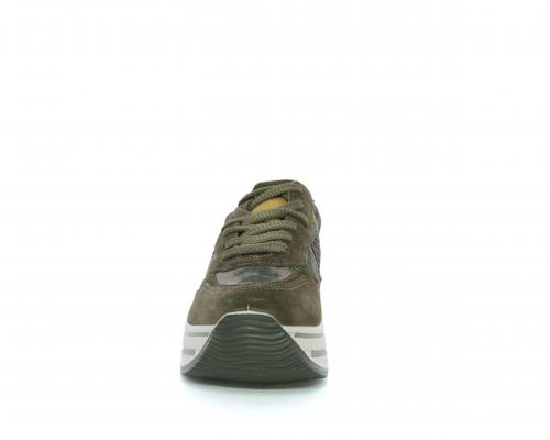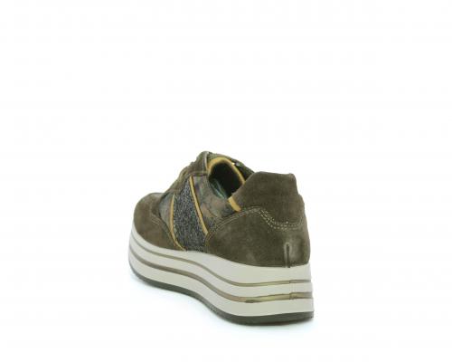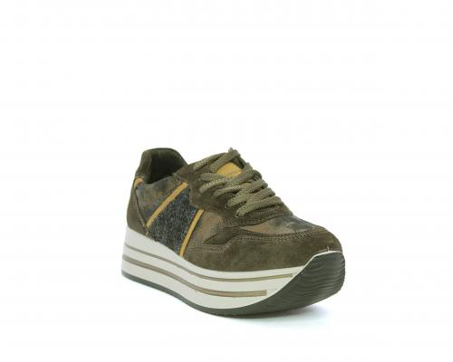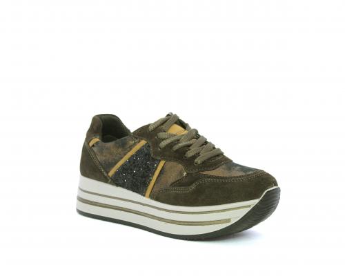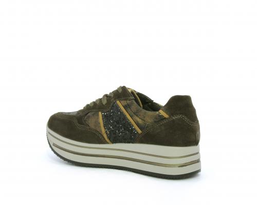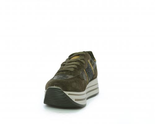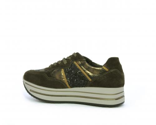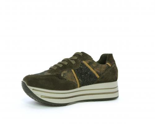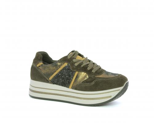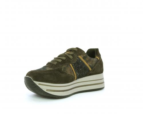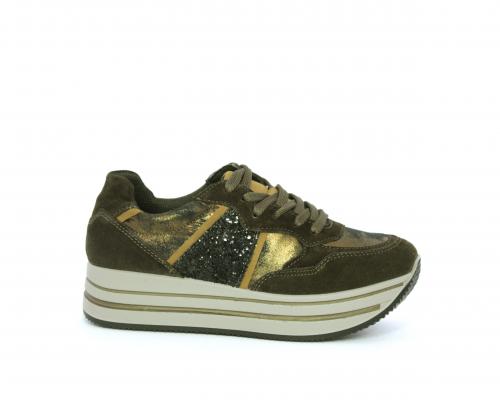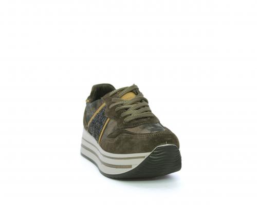 Sneakers allacciata in suede e pelle, con inserti glitterali nella parte laterale della calzatura su ambo i lati, sottopiede in pelle, interno in tessuto traspirante, fusbet estraibile