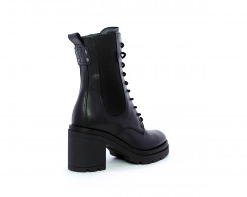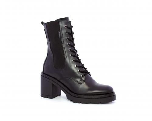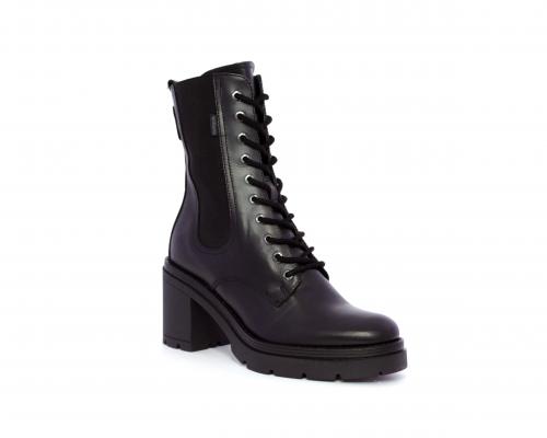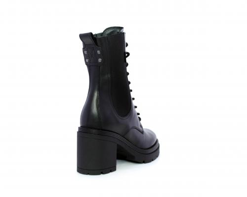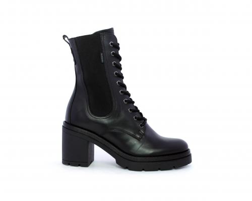 Anfibio in pelle con tacco in gomma, con chiusura nel lato interno ed elastico nel lato esterno dell'anfibio, sottopiede e fodera in pelle, fusbet con memory