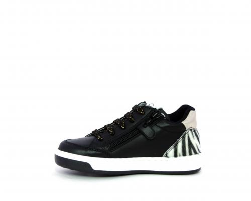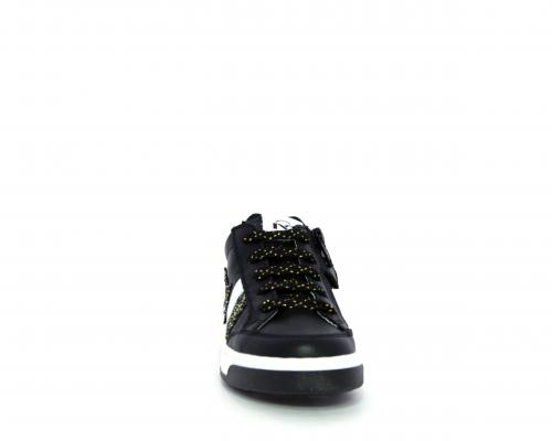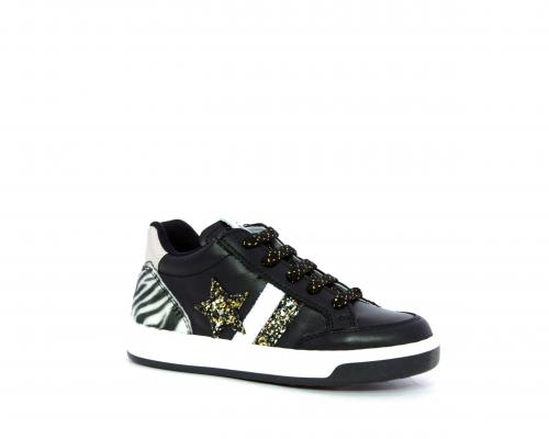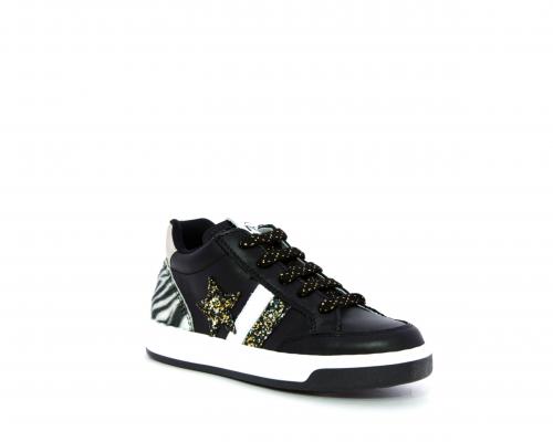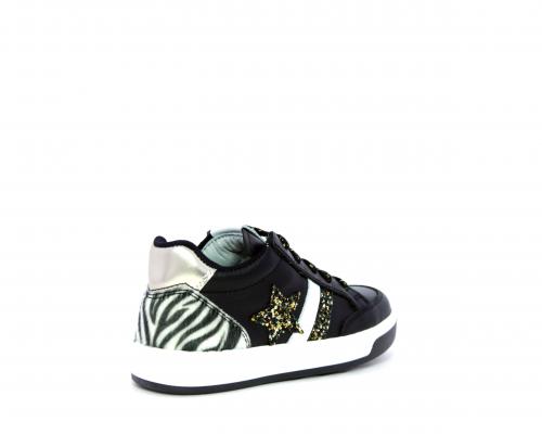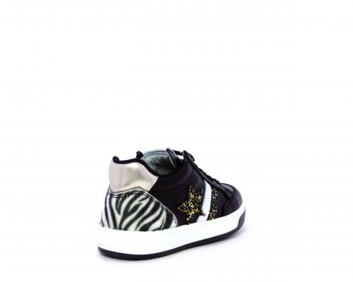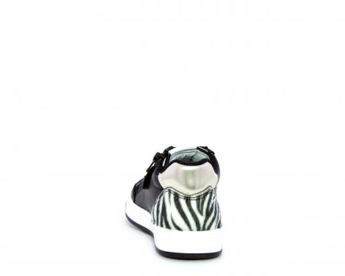 Sneakers con lacci e chiusura laterale, tomaia in pelle con inserti in lurex, sottopiede e fodera in pelle,e fodera in tessuto intorno al caviglia per rendere la calzatura più confortevole, fusbet estraibile