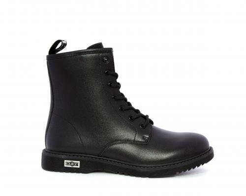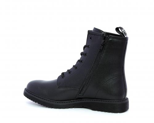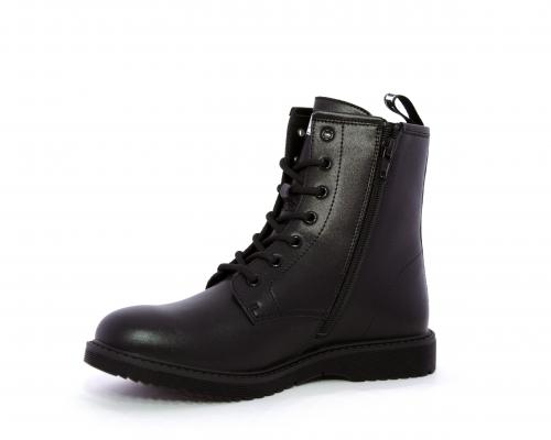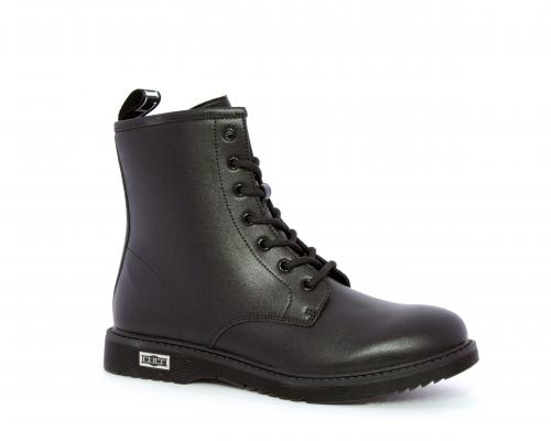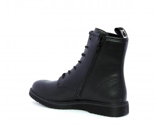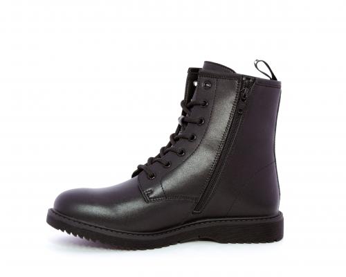 Anfibio in pelle, con lacci e chiusura laterale per facilitare la calzata, sottopiede e fodera in pelle