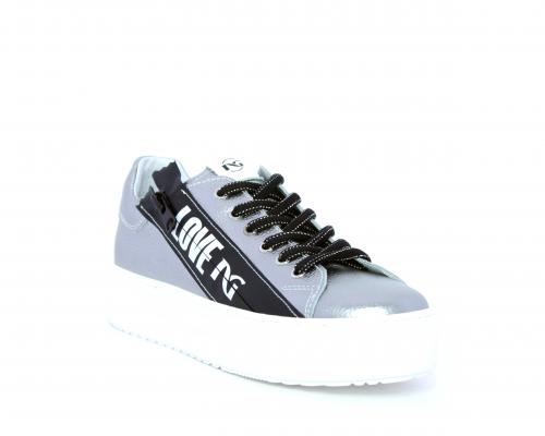 Sneakers allacciata e zip laterale. fodera e sottopiede in pelle, plantare estraibile