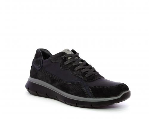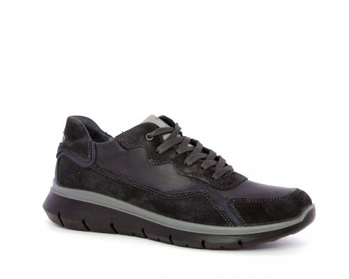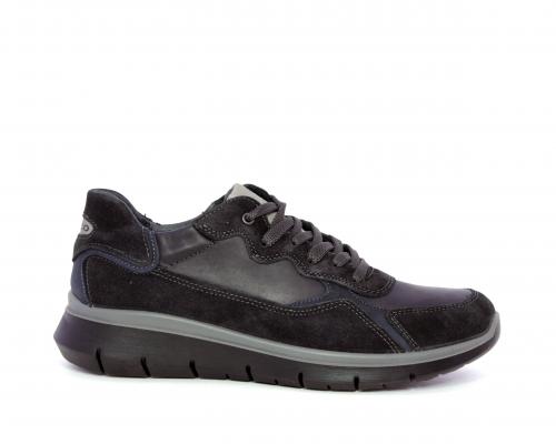 Sneakers allacciata, tomaia in pelle e camoscio, sottopiede e fodera in pelle, fusbet estraibile con memory foam