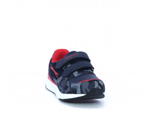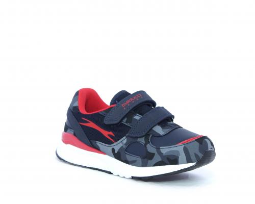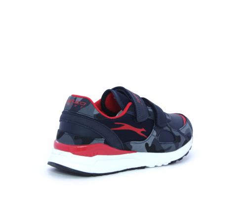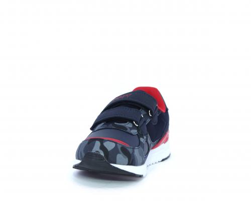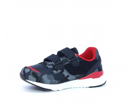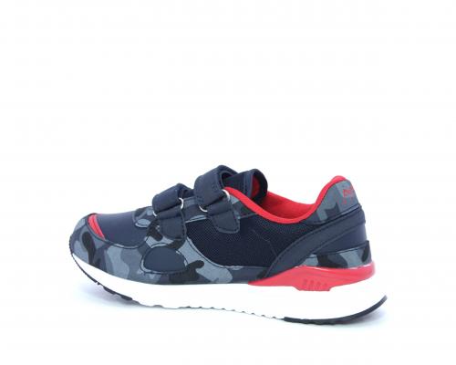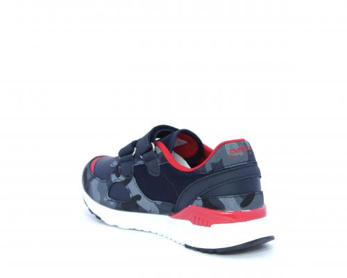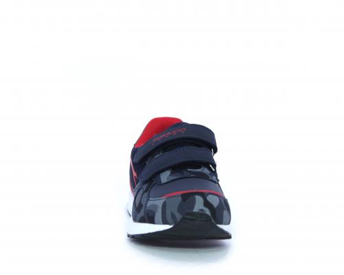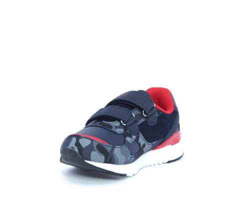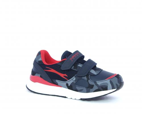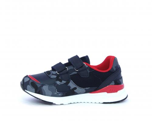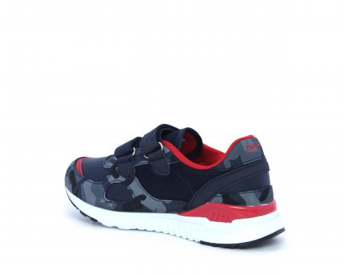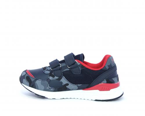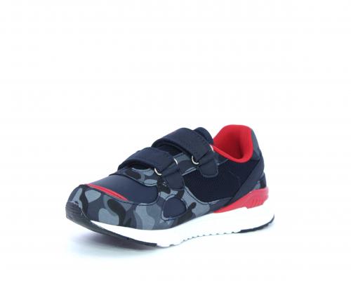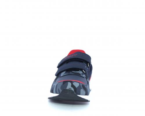 Sneakers con doppio velcro, in pelle e tessuto, sottopiede in pelle, interno in tessuto, fusbet estraibile