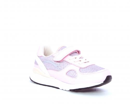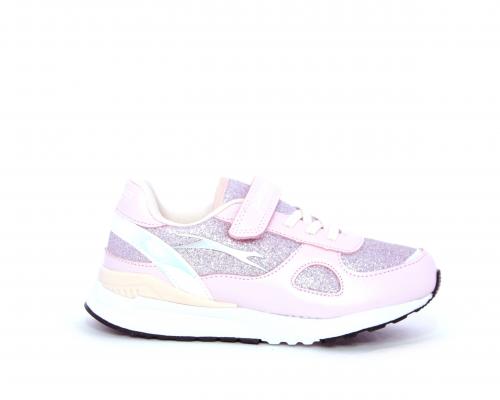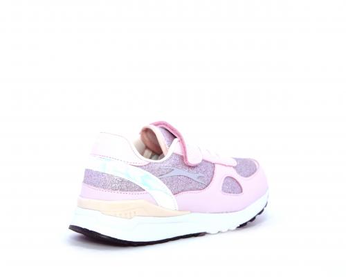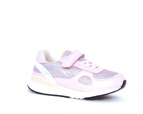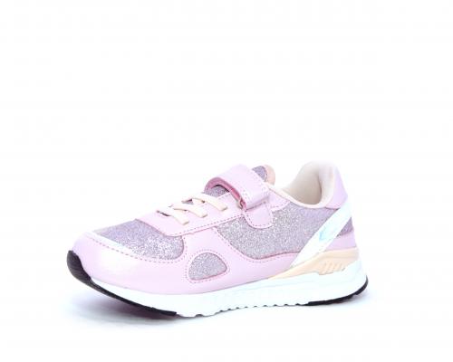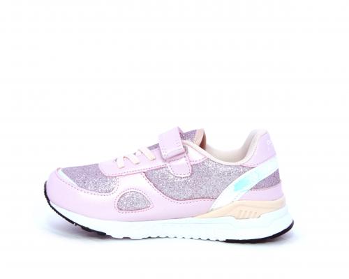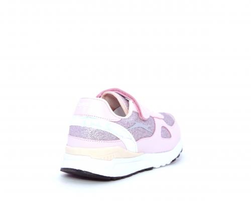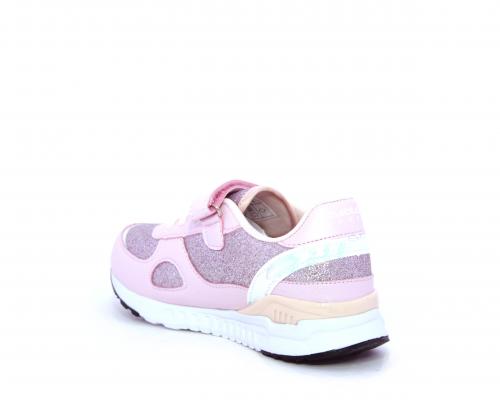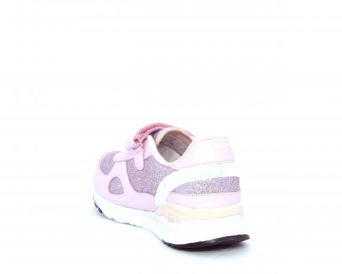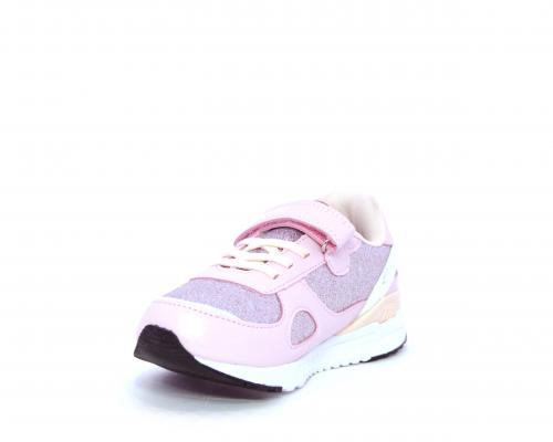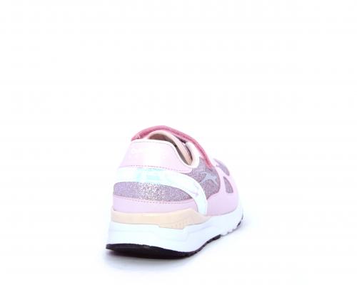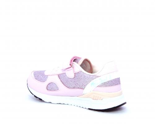 Snaekers con lacci elastici e velcro, in pelle e alcune parti di lurex, sottopiede in pelle, fodera in tessuto, fusbet estraibile