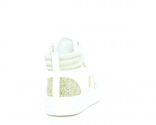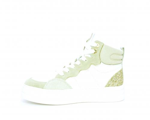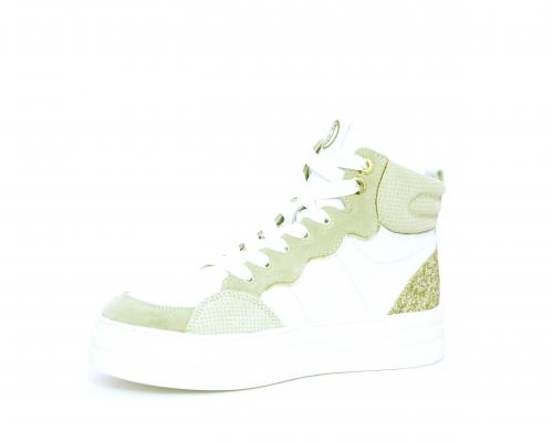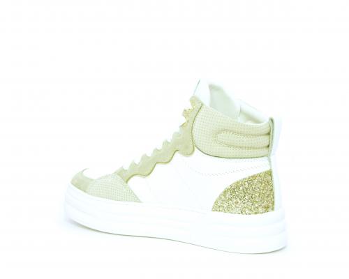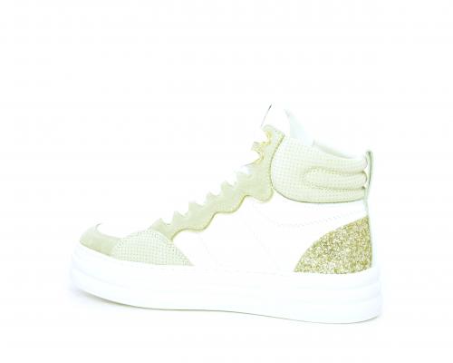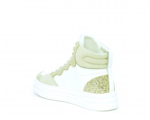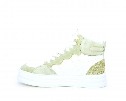Sneakers alta con lacci, tomaia in pelle e camoscio, sottopiede e fodera interna in tessuto , fusbet estraibile