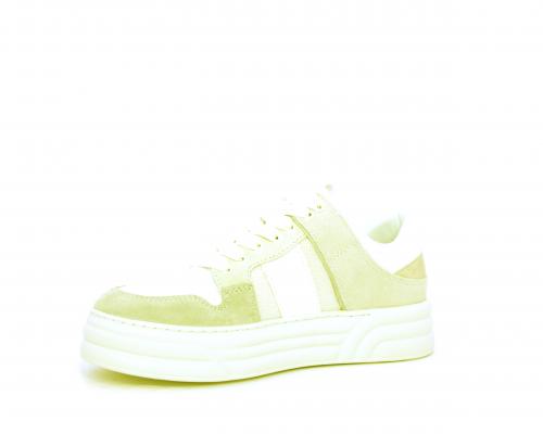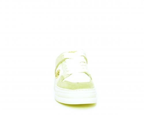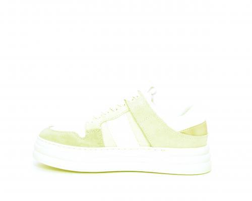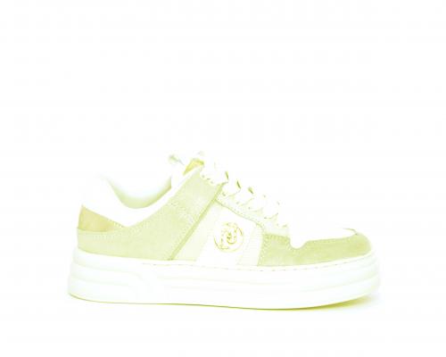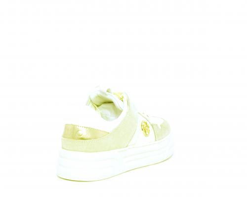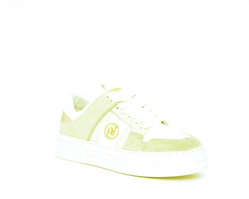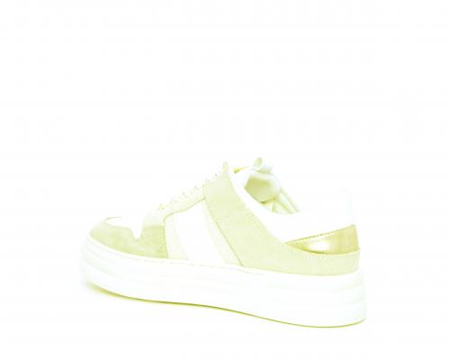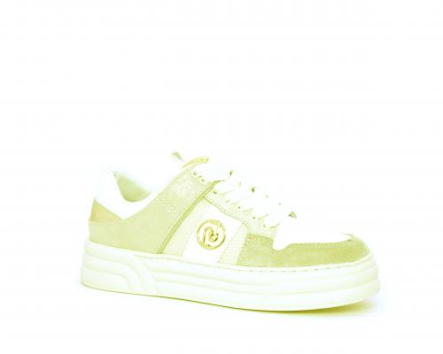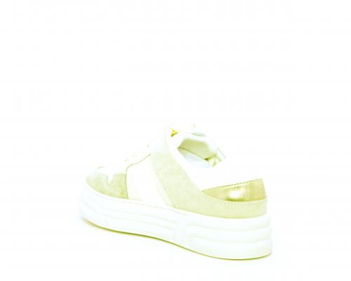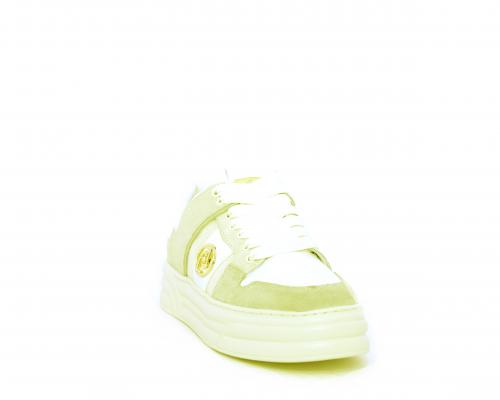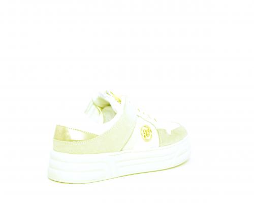 Sneakers con lacci, con platform, tomaia in pelle con inserti in camoscio e tessuto, logo color oro, sottopiede e fodera in tessuto, fusbet estraibile