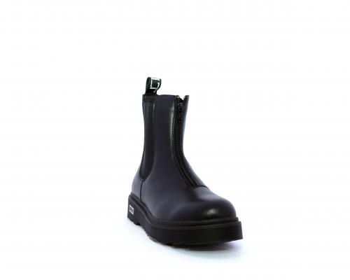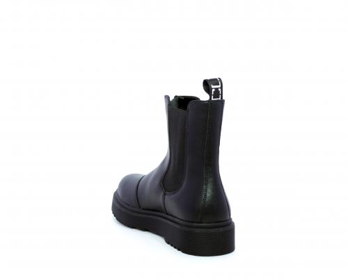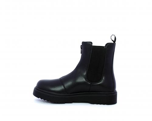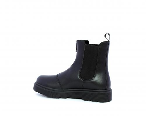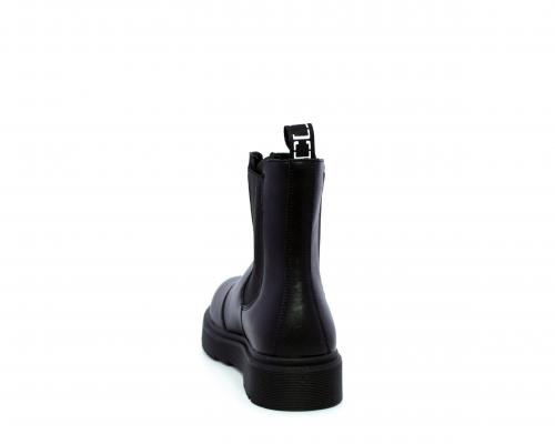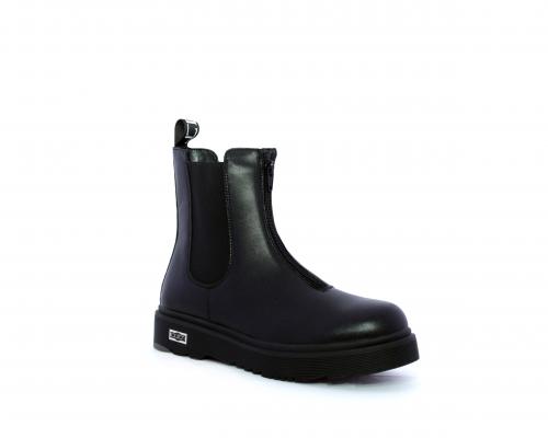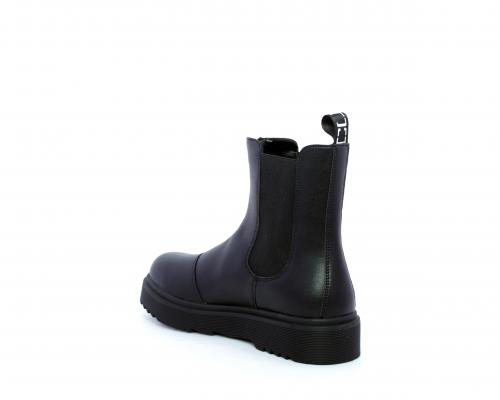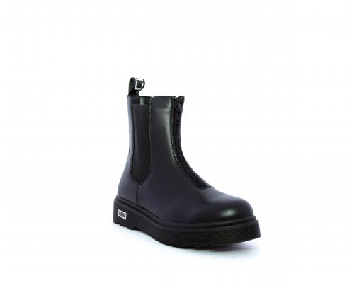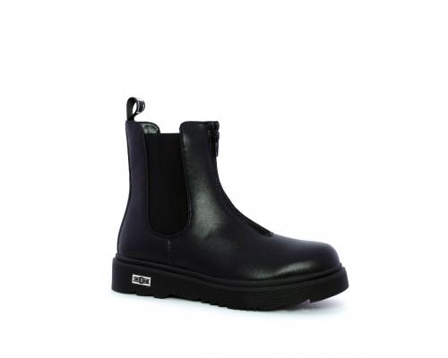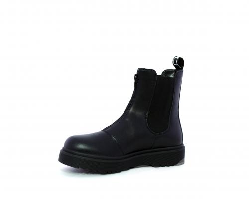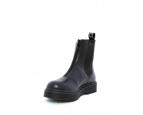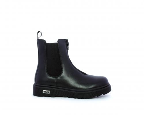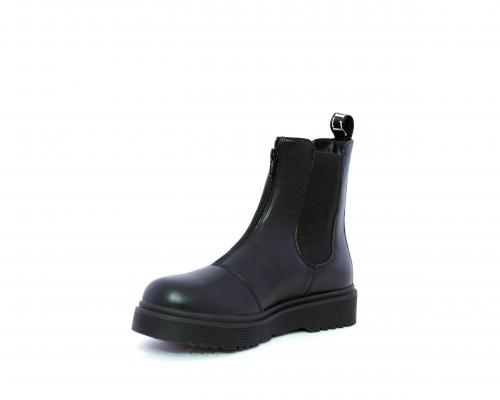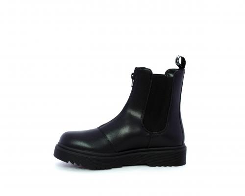 Tronchetto in pelle, doppio elastico laterale, zip frontale, fodera in tessuto, sottopiede in pelle, fusbet estraibile