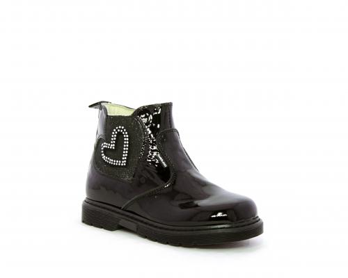 Stivaletto in vernice con zip laterale, fodera e sottopiede in pelle
