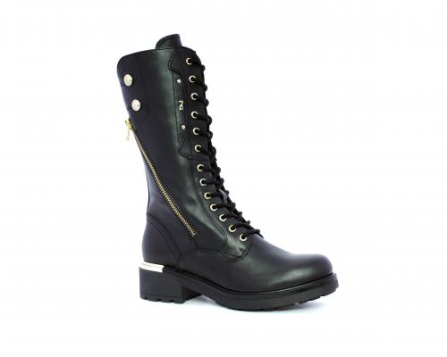 Stivale in pelle, con lacci e zip laterale per facilitare la calzata, fodera e sottopiede e interno in pelle, con memory