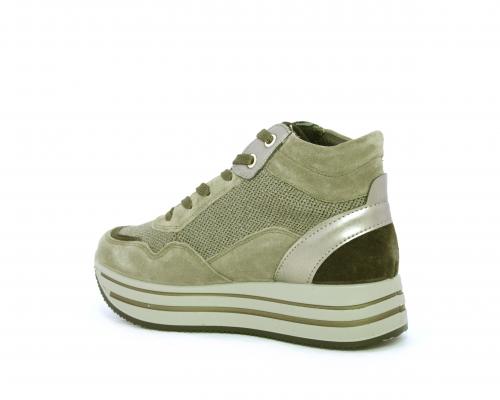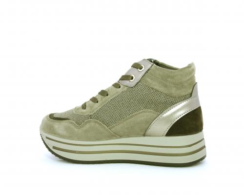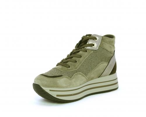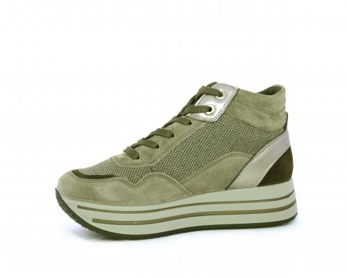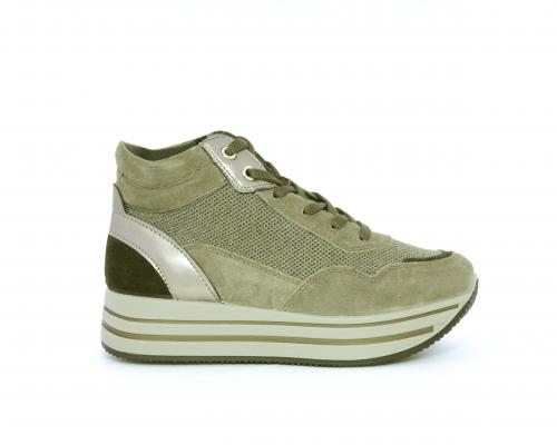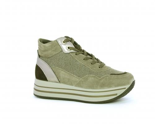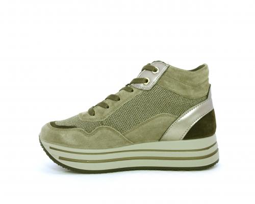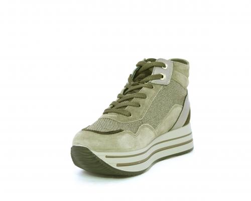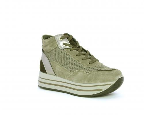 Sneakers alta con lacci, sottopiede in pelle, fodera interna in tessuto, fusbet estraibile con memory foam