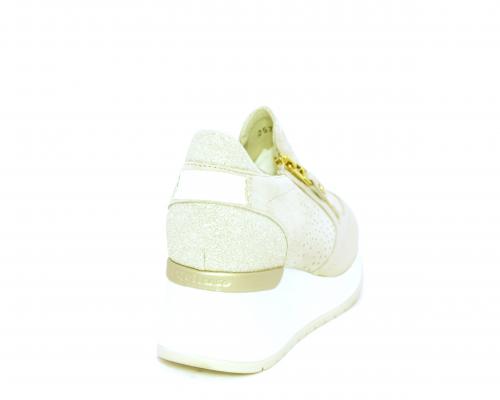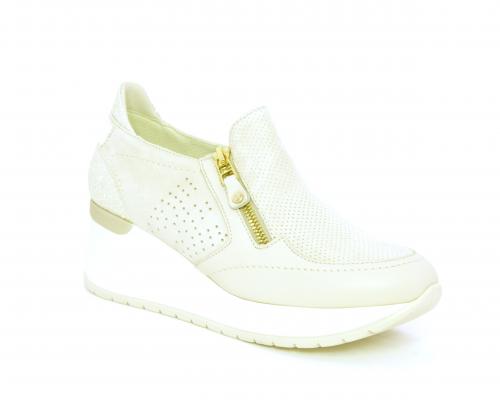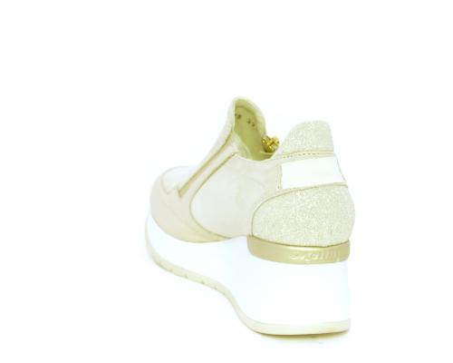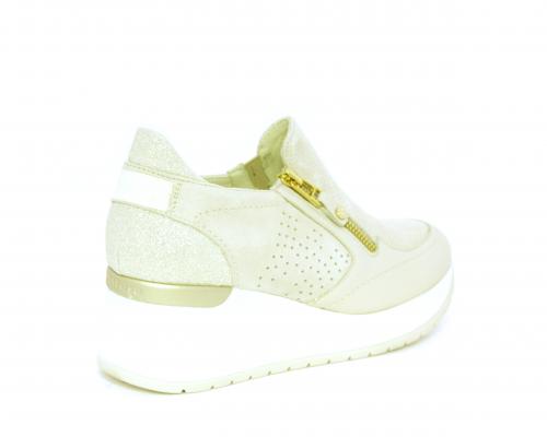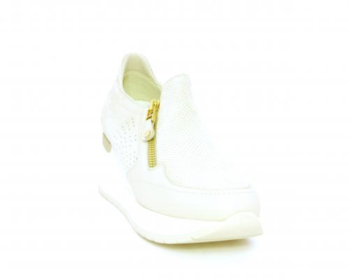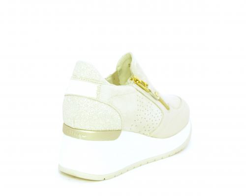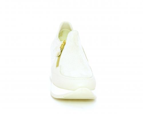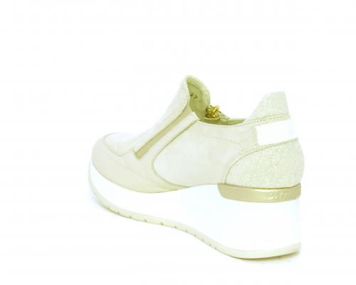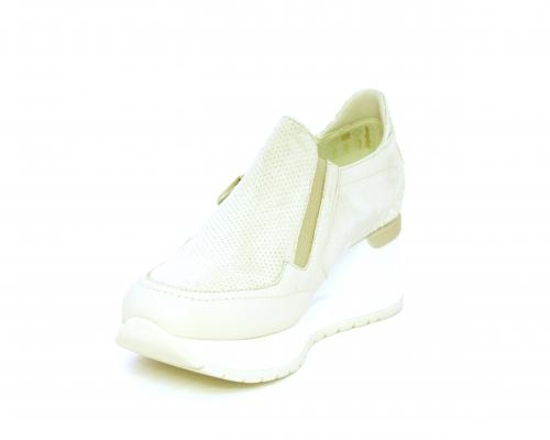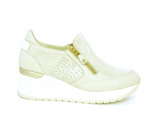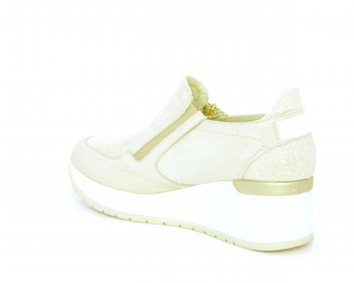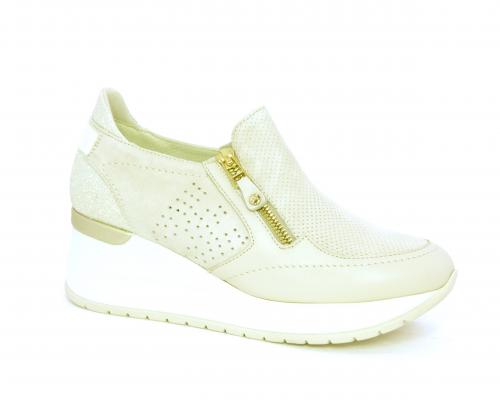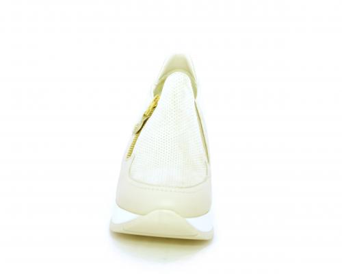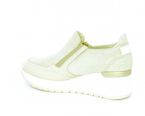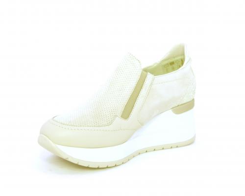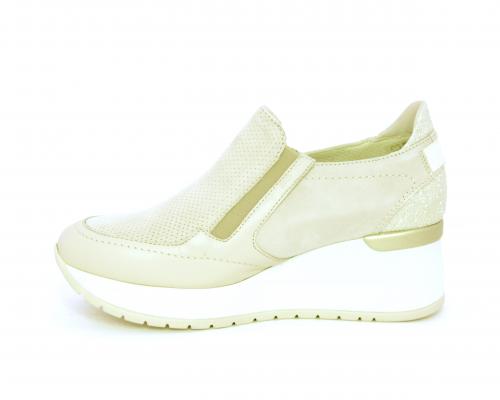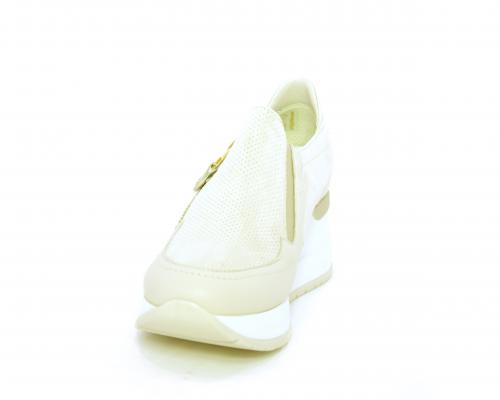 Sneakers con zeppa con chiusura ed elastico laterale per rendere la calzatura più confortevole, sottopiede in pelle, fusbet estraibile realizzato con materiali ecologici.