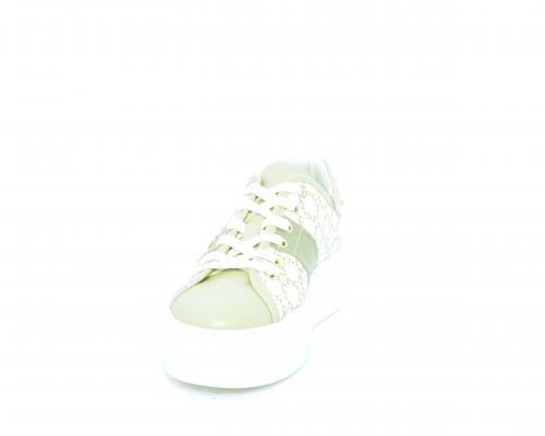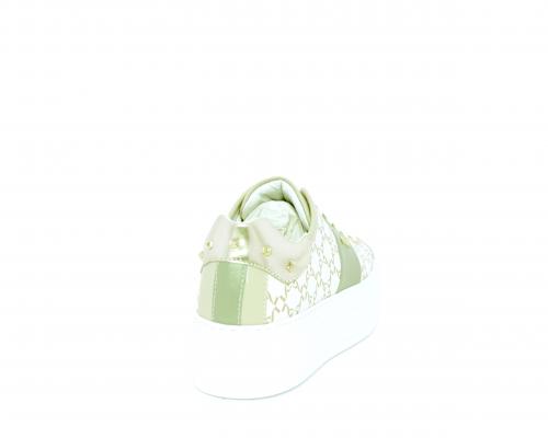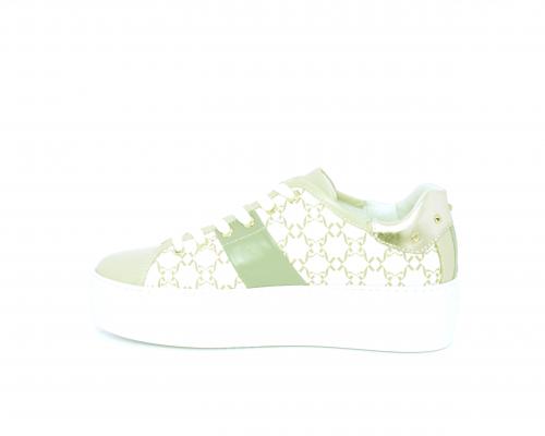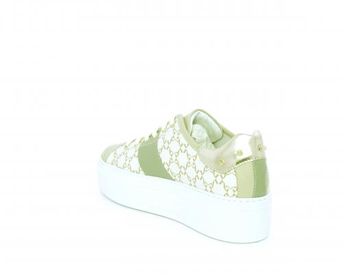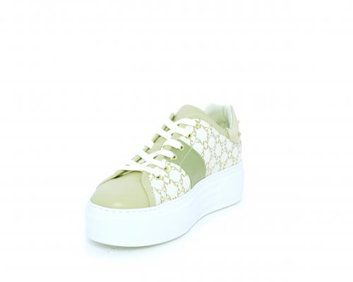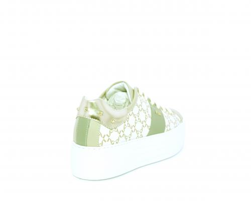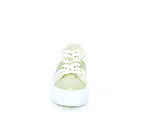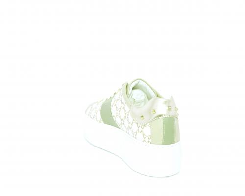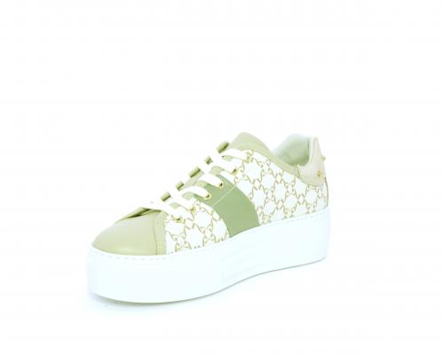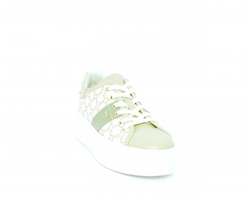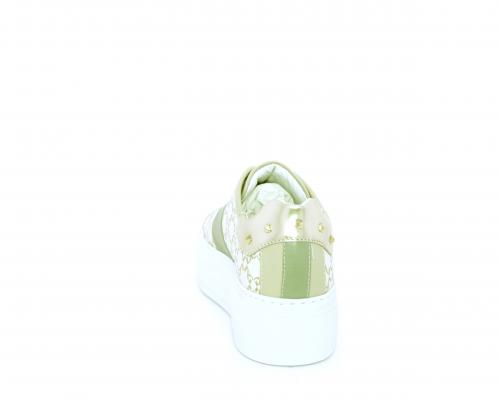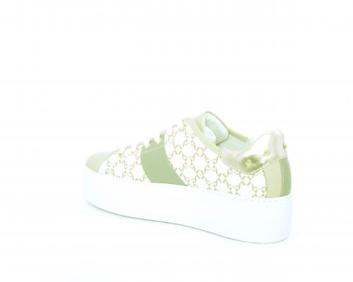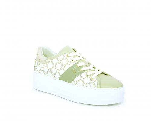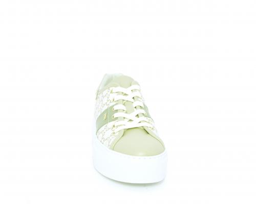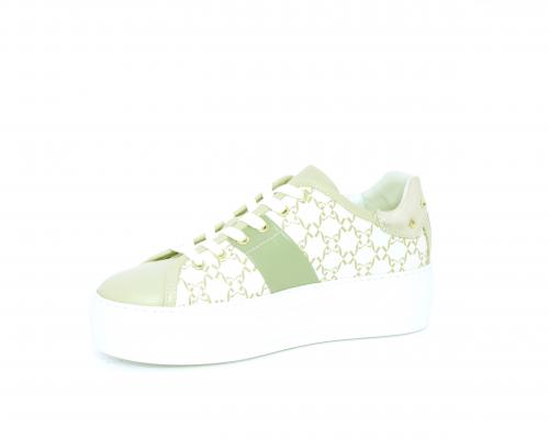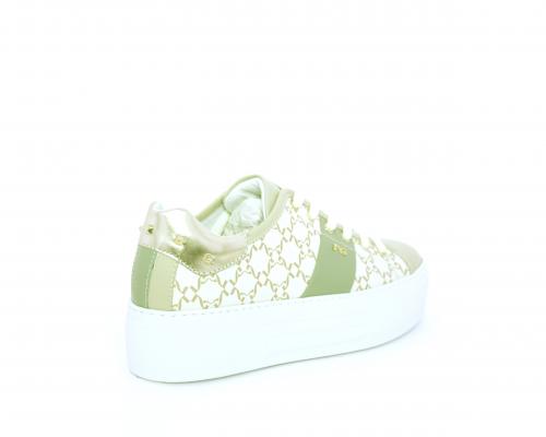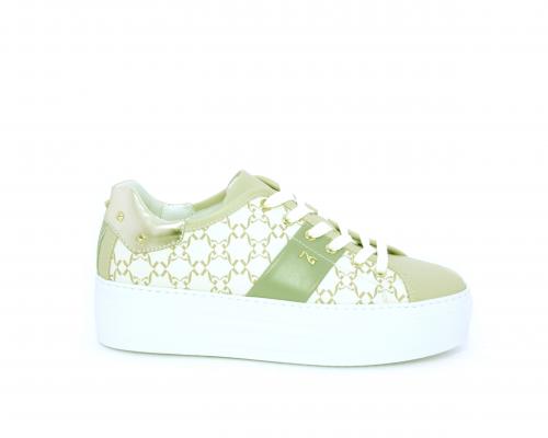 Sneakers allacciata in pelle con stampe con logo NG, banda laterale verde, sottopiede e fodera interna in pelle, fusbet estraibile, con sistema DryGo, con doppia azione, un'azione che assorbe il sudore quando la scarpa è indossata, e la seconda azione che asciuga rapidamente l'umidità quando si toglie la calzatura.