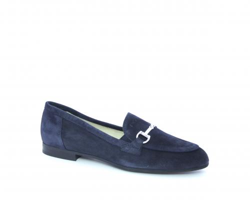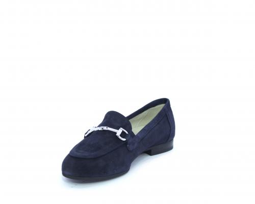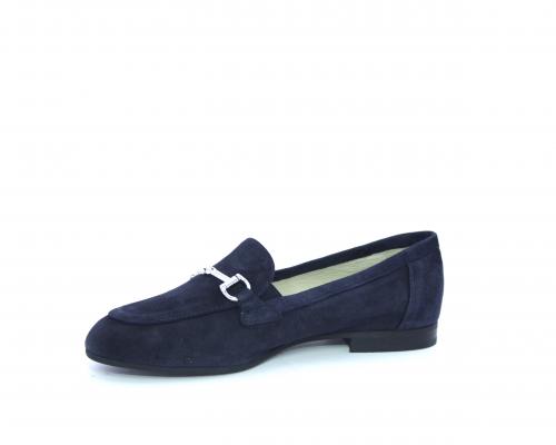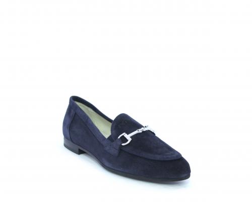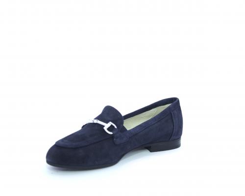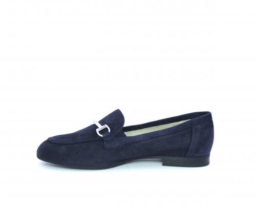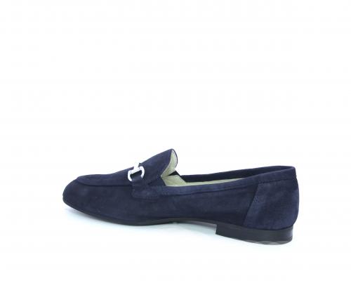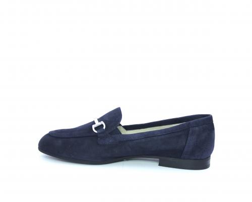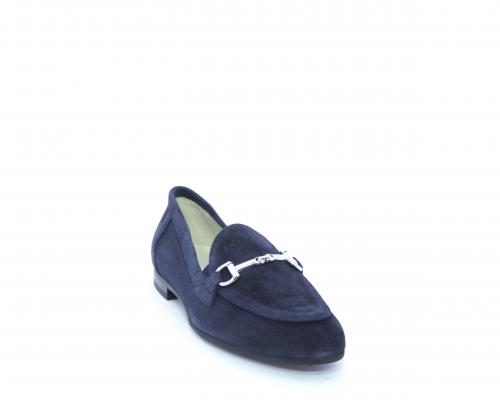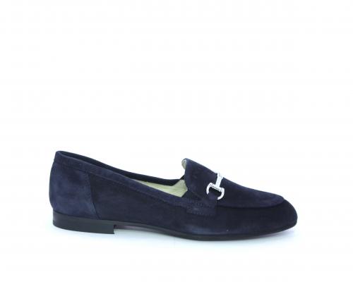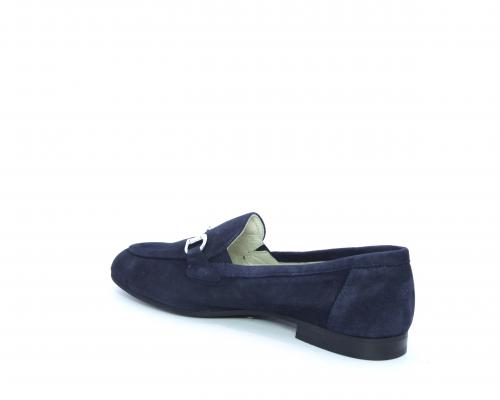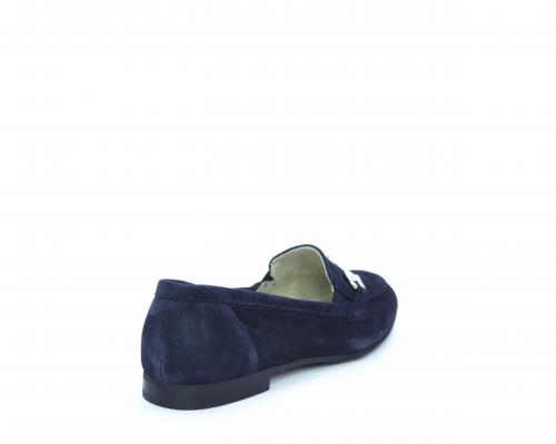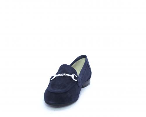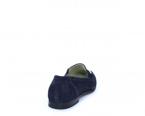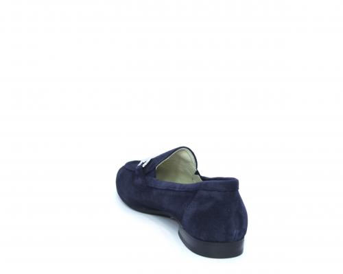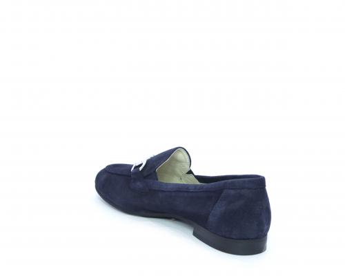 Mocassino in nabuk con elastico laterale sul collo del piede per facilitare la calzata, inserti color acciaio, sottopiede e fodera interna in pelle.