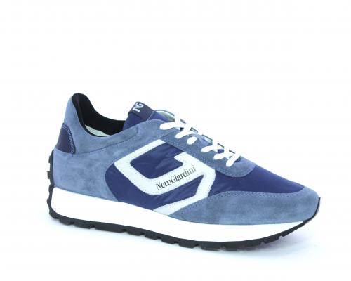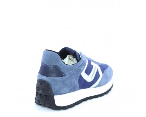 Sneakers allacciata, tomaia in nabuk e tessuto con rifiniture in pelle, cuscinetto in tessuto nella parte interna della scarpa nella zona intorno alla caviglia, sottopiede e fodera interna in pelle, fusbet estraibile con sistema DryGo, che svolge una doppia azione, assorbe l'umidità quando si indossa la calzatura e si asciuga rapidamente quando si toglie la scarpa.