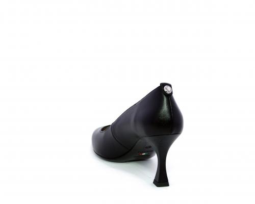 Decollettè in pelle con tacco a rocchetto, sottopiede e fodera interna in pelle, fusbet con memory.