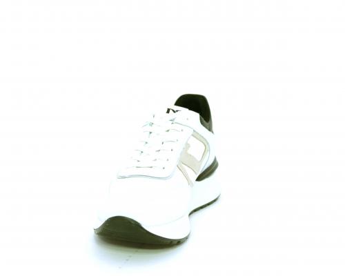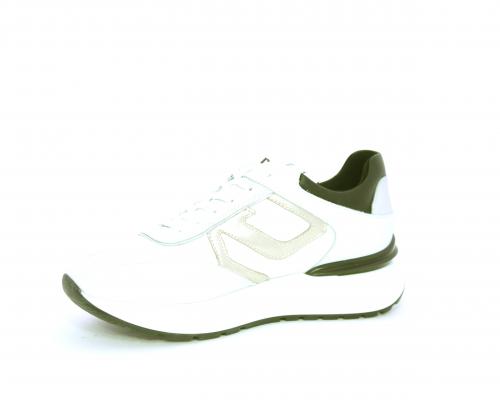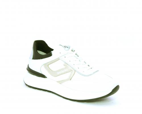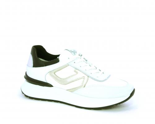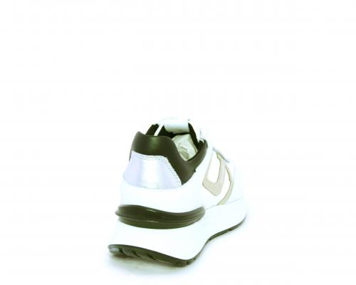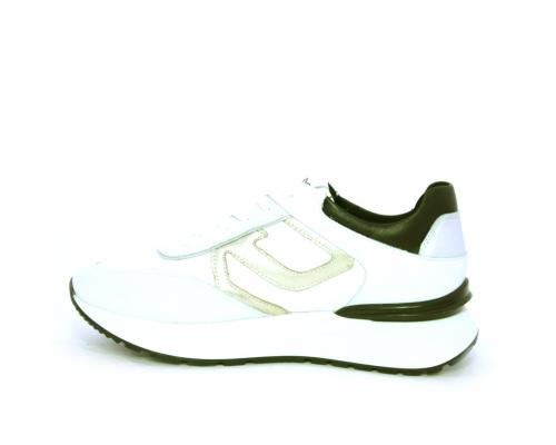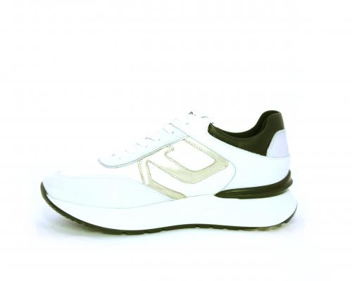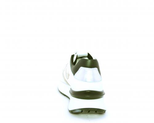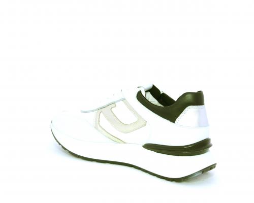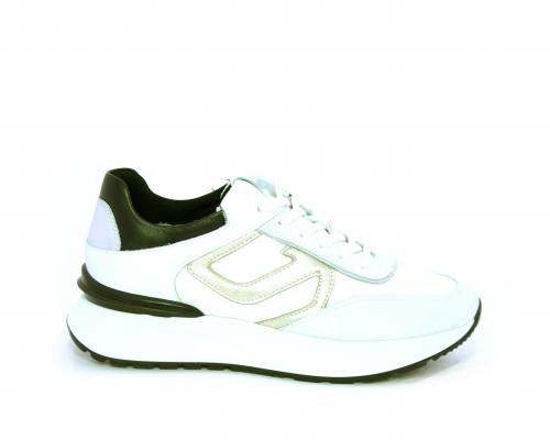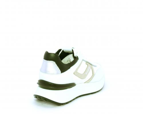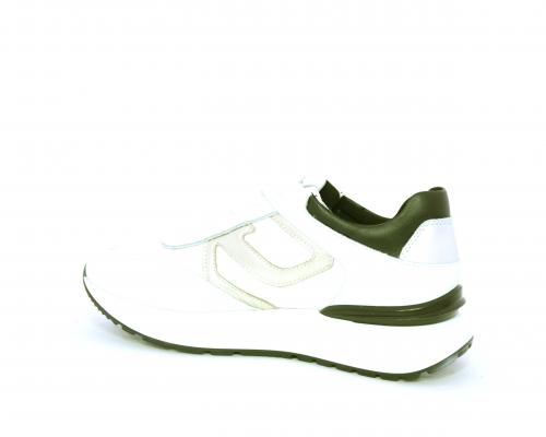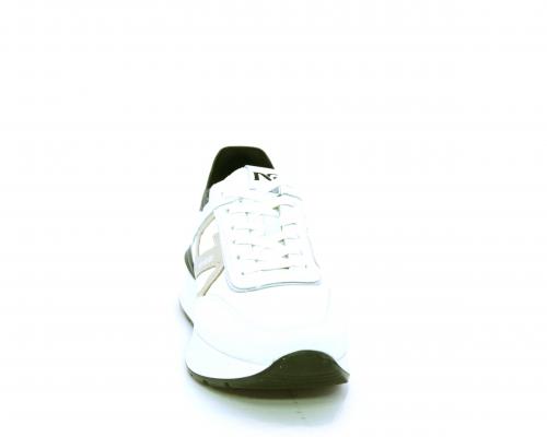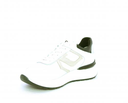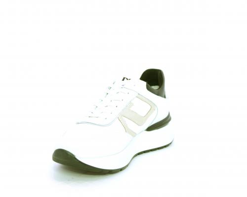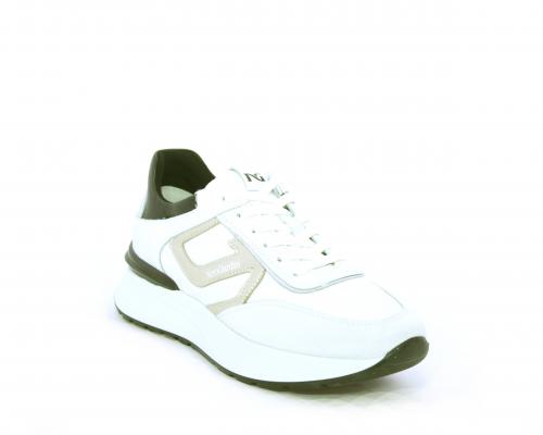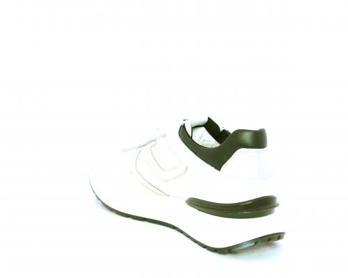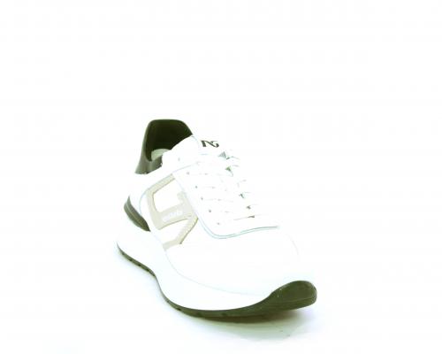 Sneakers allacciata in nabuk e tessuto con rifiniture in pelle, cuscinetto in tessuto morbido nella parte intorno alla caviglia, sottopiede e fodera interna in pelle, fusbet estraibile con sistema DryGo, che svolge una doppia azione assorbe l'umidità quando si indossa la calzatura e si asciuga rapidamente quando si toglie la scarpa.