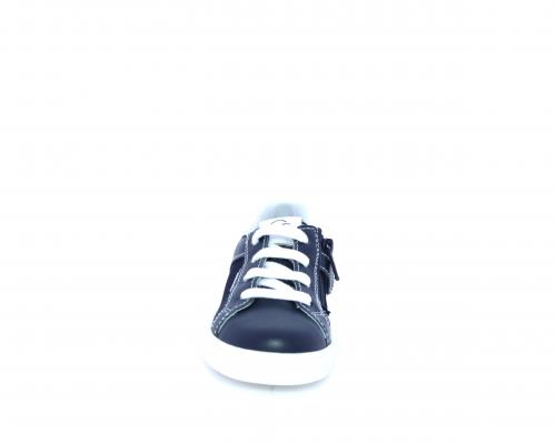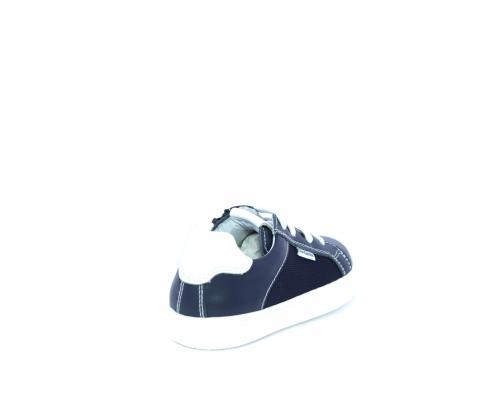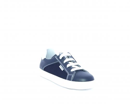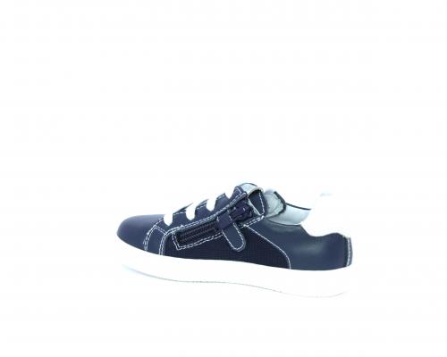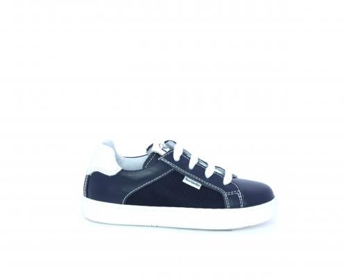 Sneakers allacciata con chiusura laterale per facilitare la calzata, tomaia in pelle con inserti in tessuto, sottopiede e fodera interna in pelle, fusbet estraibile.