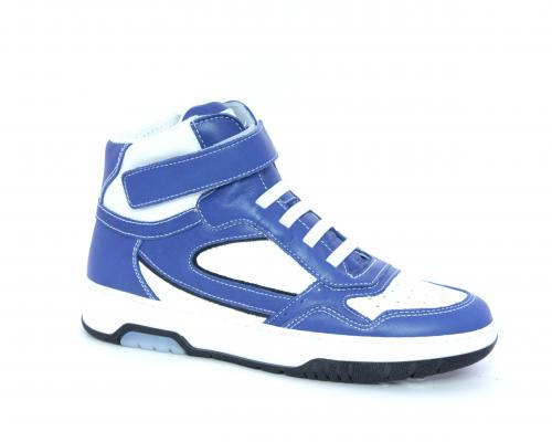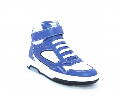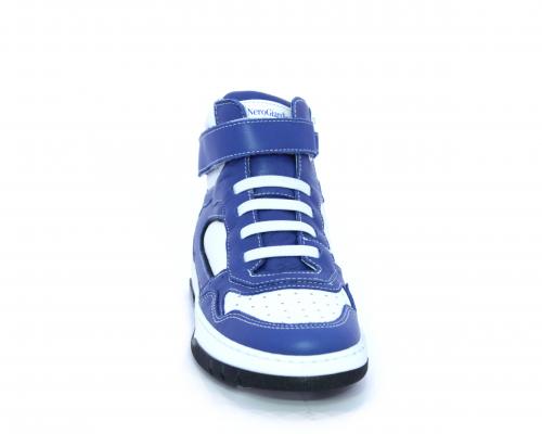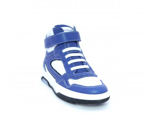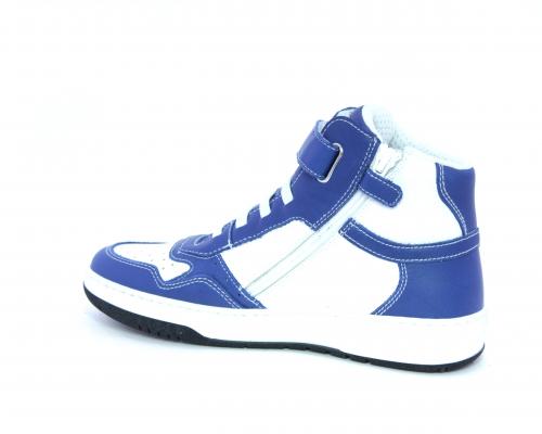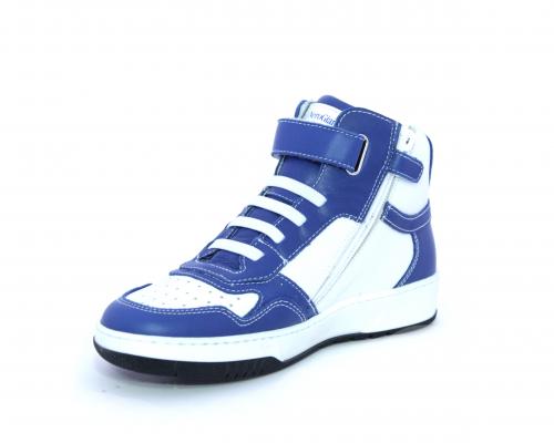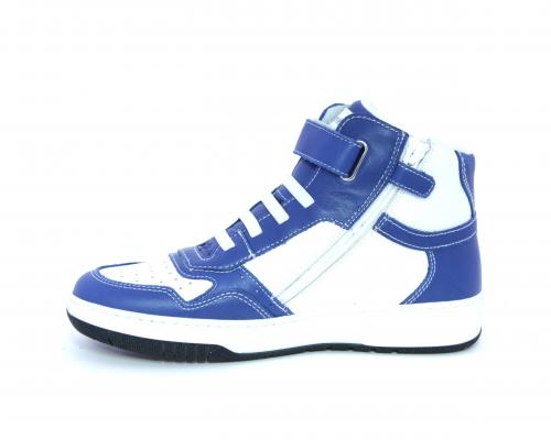 Sneakers in pelle con lacci elastici e velcro, chiusura laterale per facilitare la calzata, cuscinetto in tessuto nella parte intorno alla caviglia per rendere la scarpa più confortevole, sottopiede e fodera interna in pelle, fusbet estraibile.