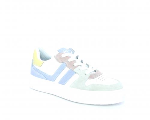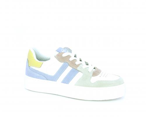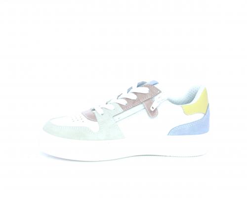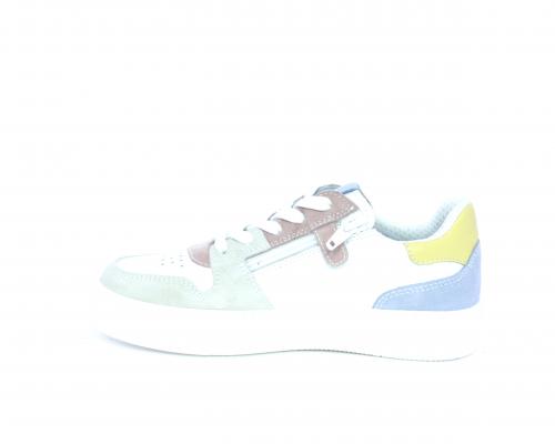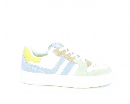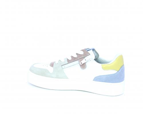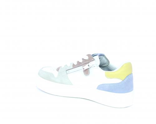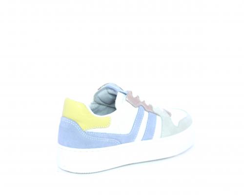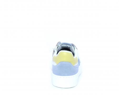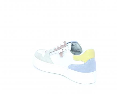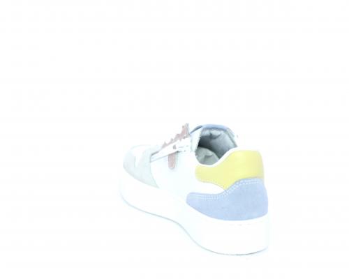 Sneakers allacciata con chiusura laterale per facilitare la calzata, tomaia in pelle con rifiniture in nabuk, cuscinetto in tessuto nella parte intorno alla caviglia, sottopiede e fodera interna in pelle, fusbet estraibile.