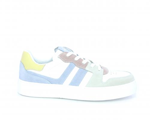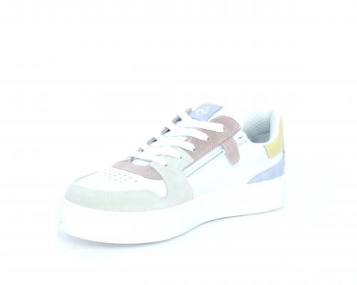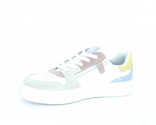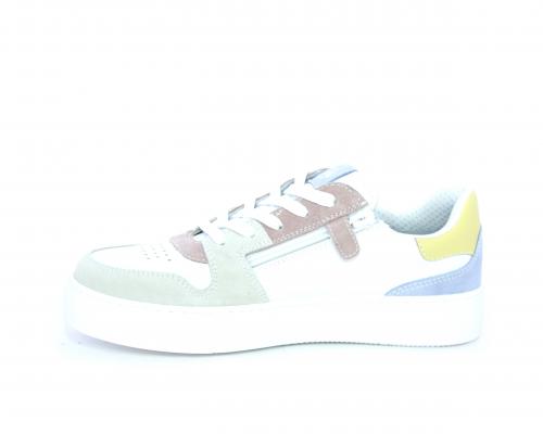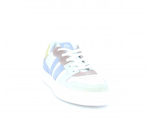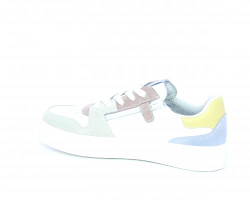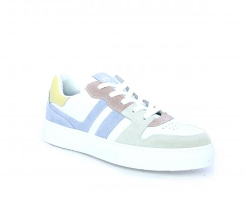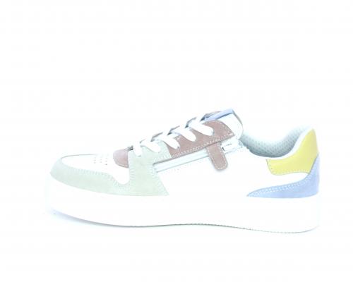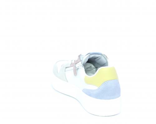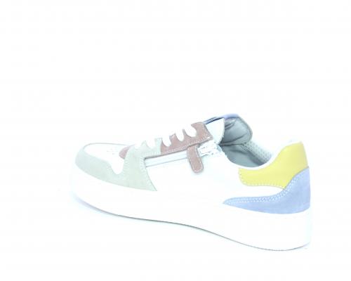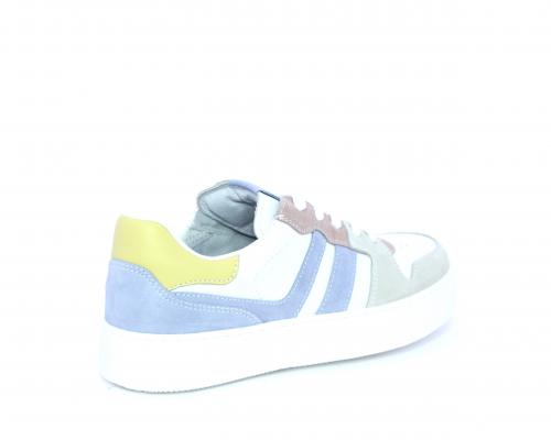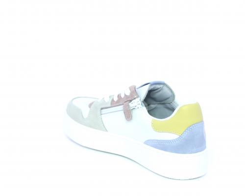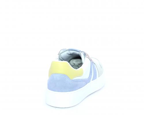 Sneakers allacciata con chiusura laterale per facilitare la calzata, tomaia in pelle con rifiniture in nabuk, cuscinetto in tessuto nella parte intorno alla caviglia, sottopiede e fodera interna in pelle, fusbet estraibile.