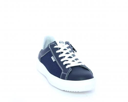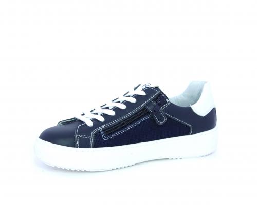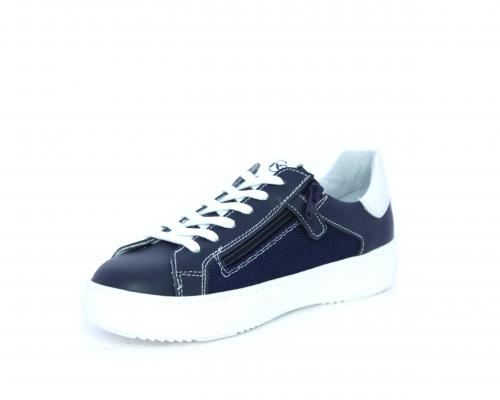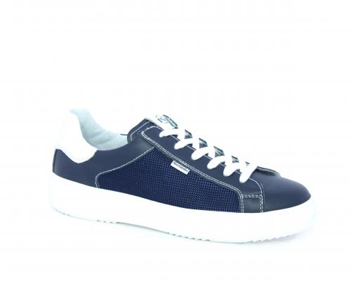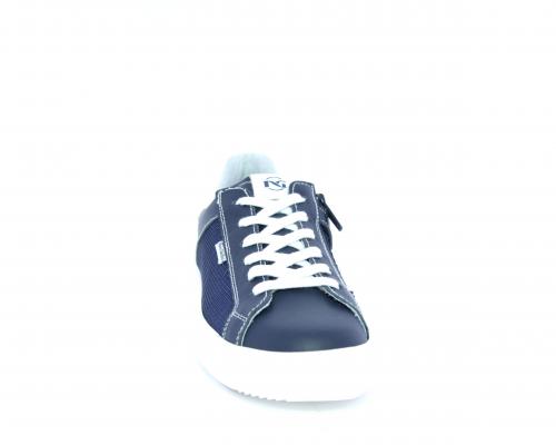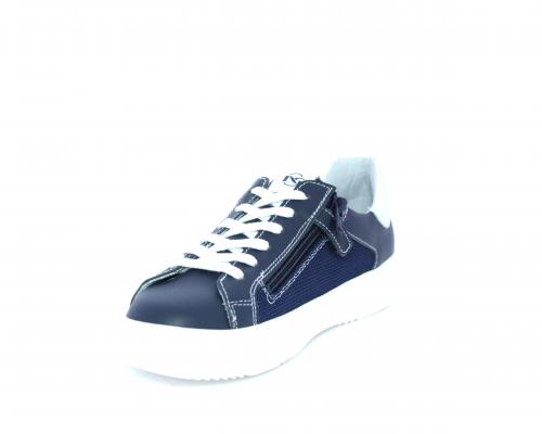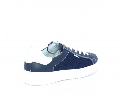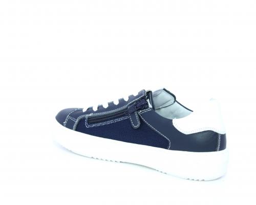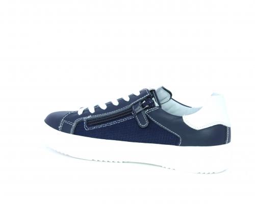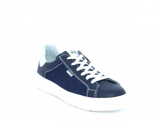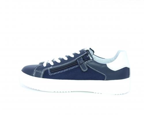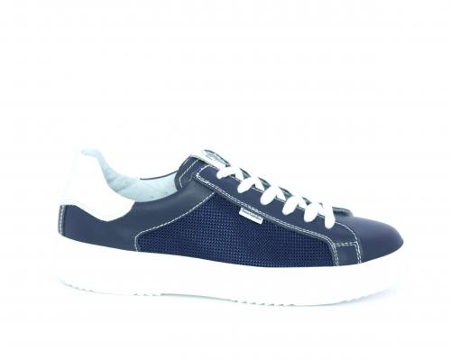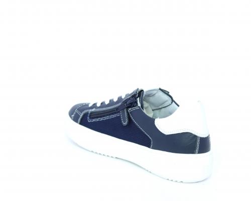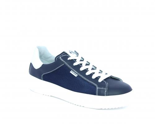 Sneakers con lacci e chiusura laterale per facilitare la calzata, tomaia in pelle con inserti in tessuto, sottopiede e fodera interna in pelle, fusbet estraibile.