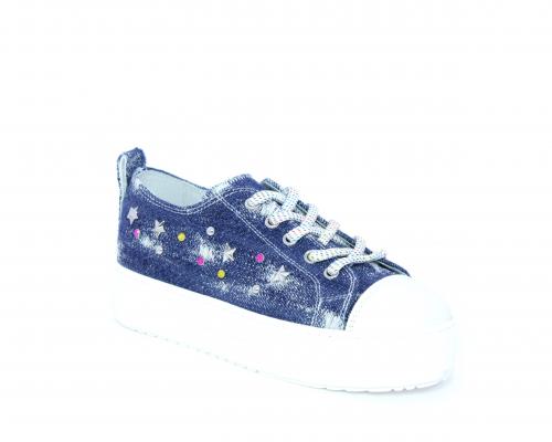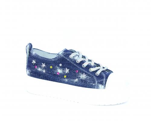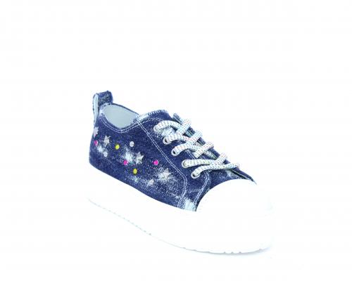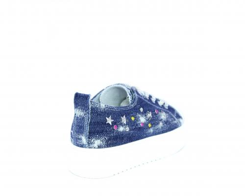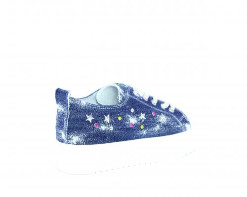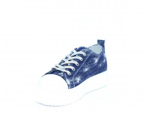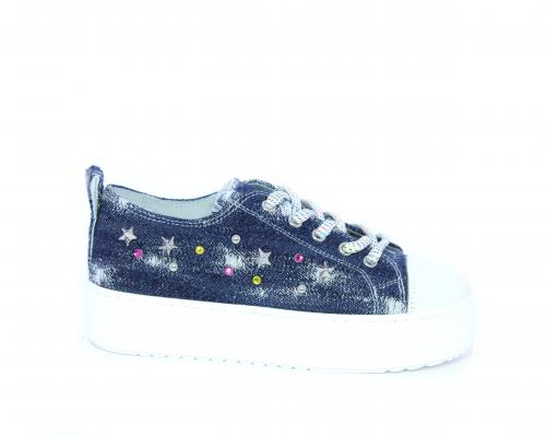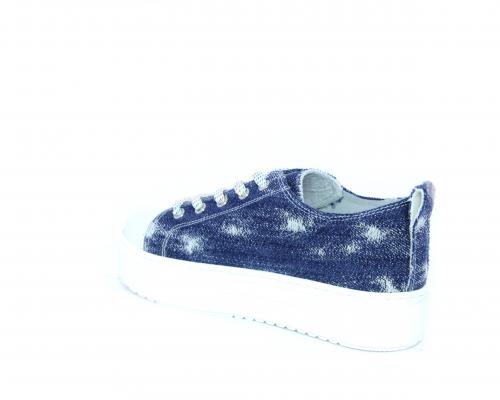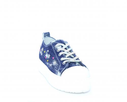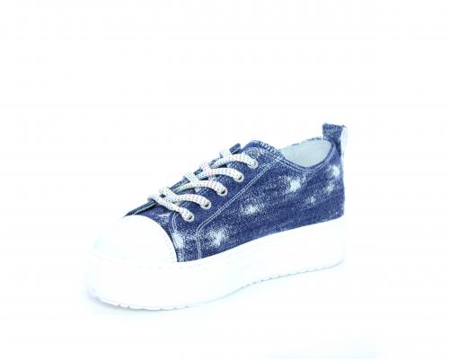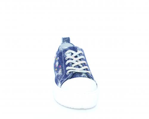 Sneakers allacciata in tessuto con punta in pelle, sottopiede e fodera interna in pelle, fusbet estraibile.