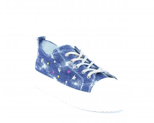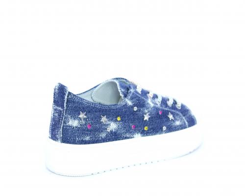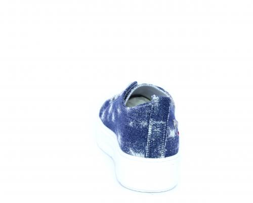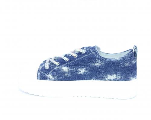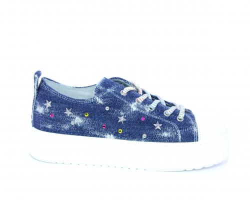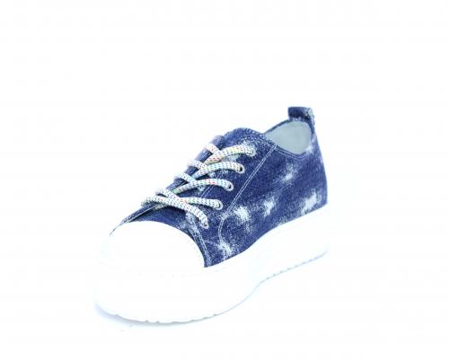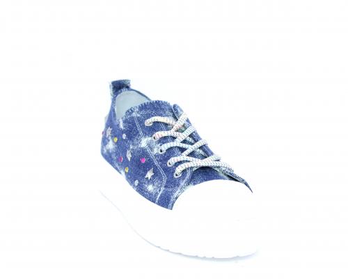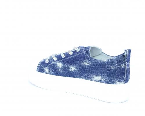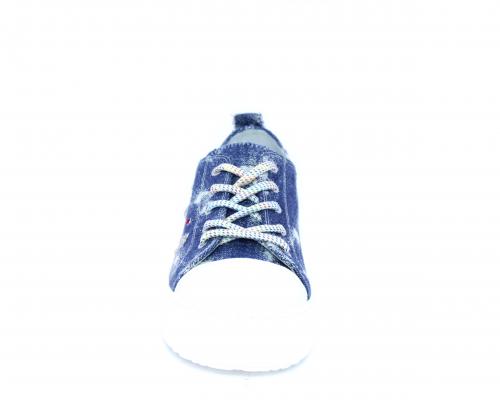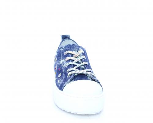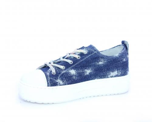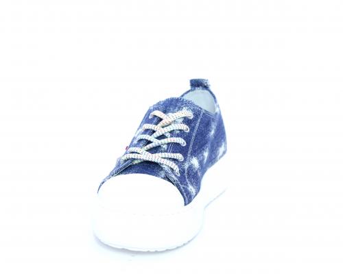 Sneakers allacciata in tessuto con punta in pelle, sottopiede e fodera interna in pelle, fusbet estraibile.