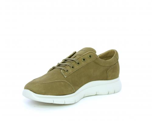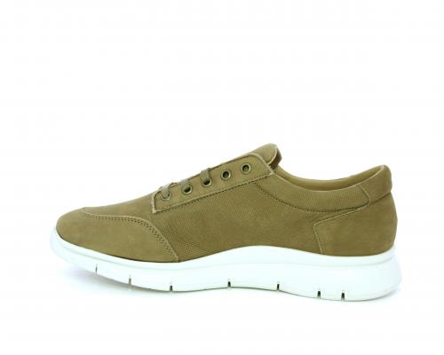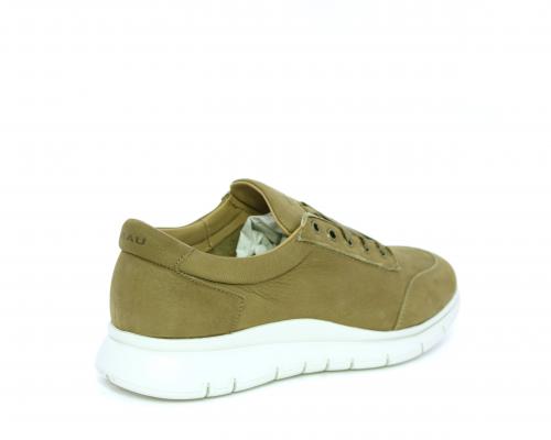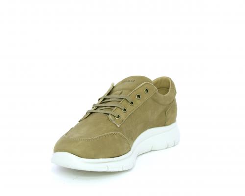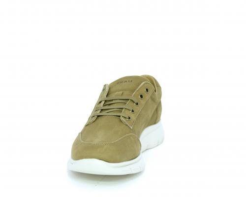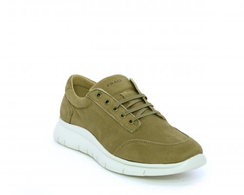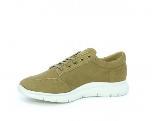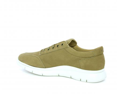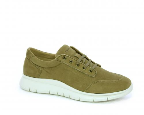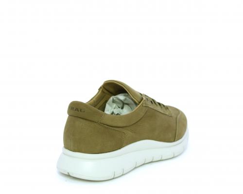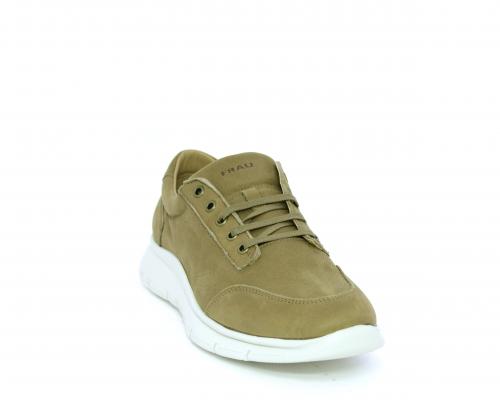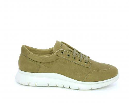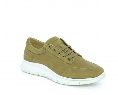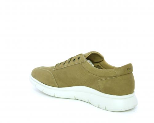 Sneakers allacciata in nabuk, sottopiede in tessuto, fodera interna in pelle, fusbet con memory form.
