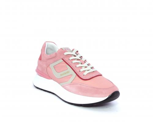 Sneakers allacciata in nabuk e tessuto, sottopiede e fodera interna in pelle, fusbet estraibile con sistema DryGo, che svolge una doppia azione assorbe l'umidità quando si indossa la calzatura e si asciuga rapidamente quando si toglie la scarpa.