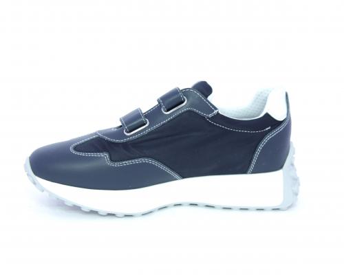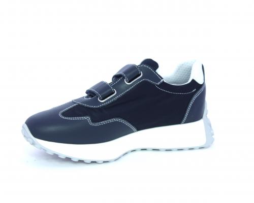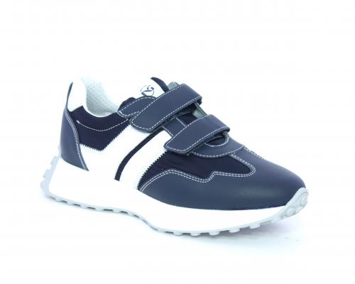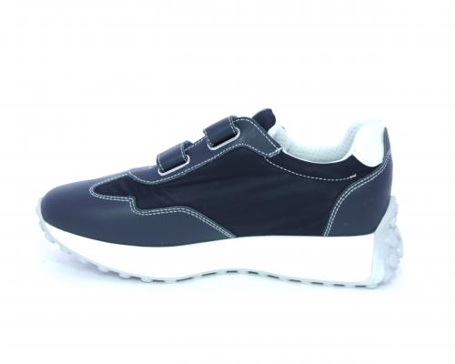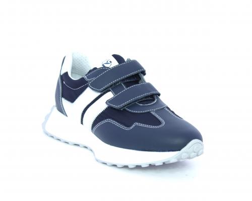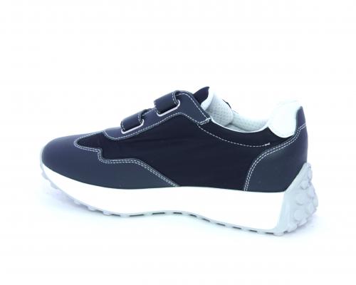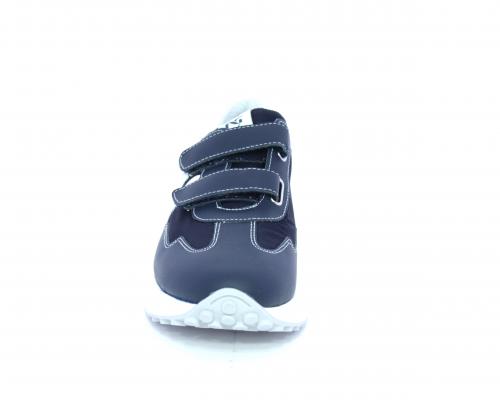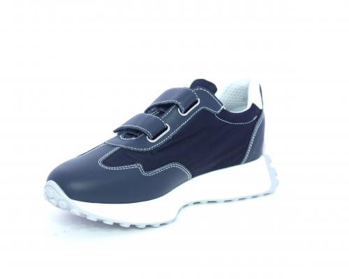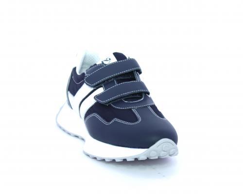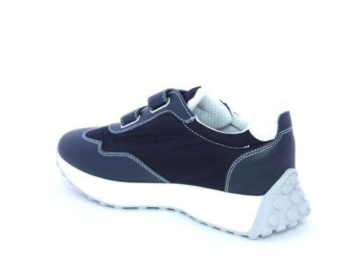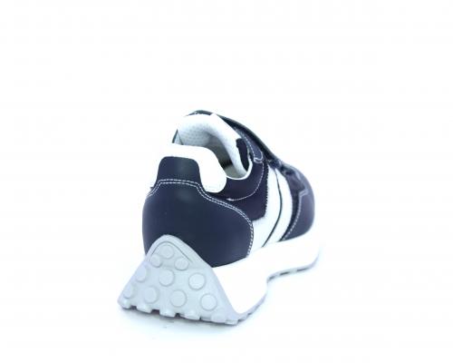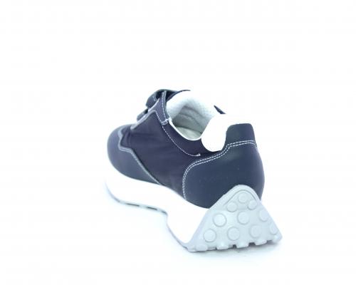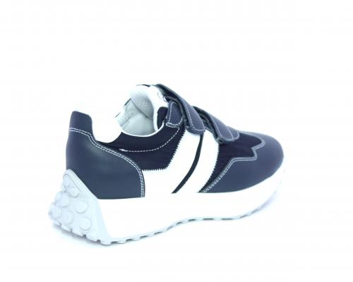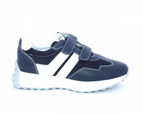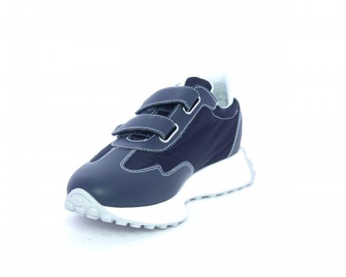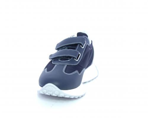 Sneakers con doppio velcro, tomaia in pelle e tessuto, cuscinetto in tessuto nella parte intorno alla caviglia per rendere la calzatura più confortevole, sottopiede e fodera interna in pelle.