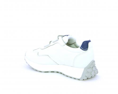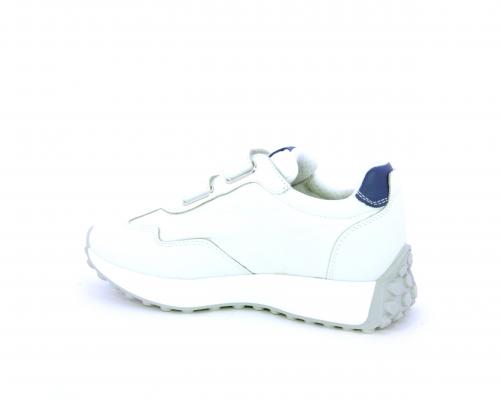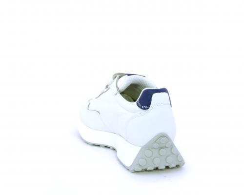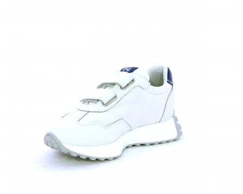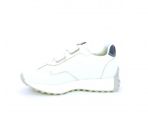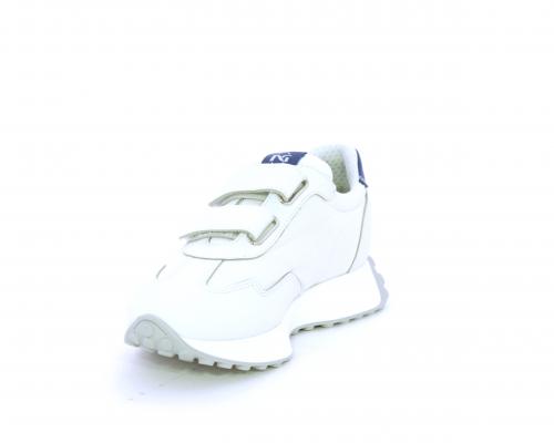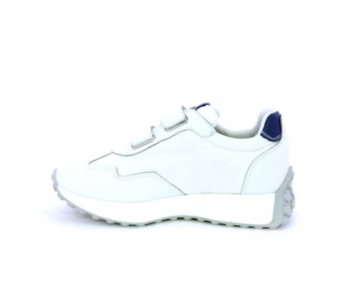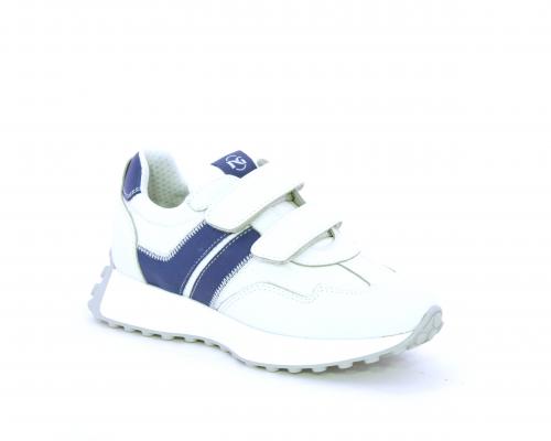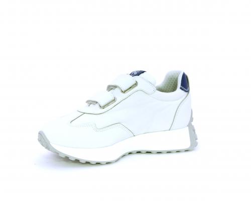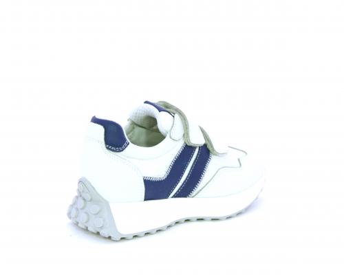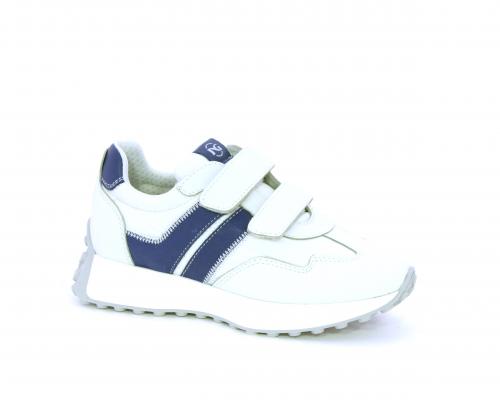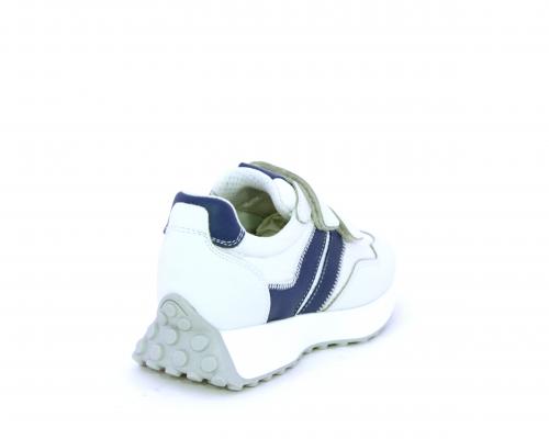 Sneakers con doppio velcro, tomaia in pelle e tessuto, cuscinetto in tessuto nella zona intorno alla caviglia per rendere la scarpa più confortevole, sottopiede e fodera interna in pelle.
