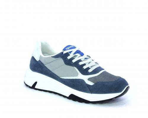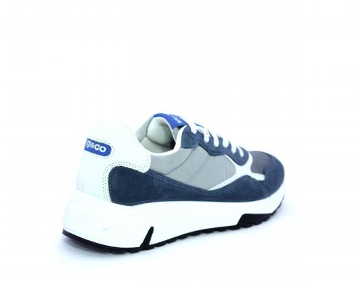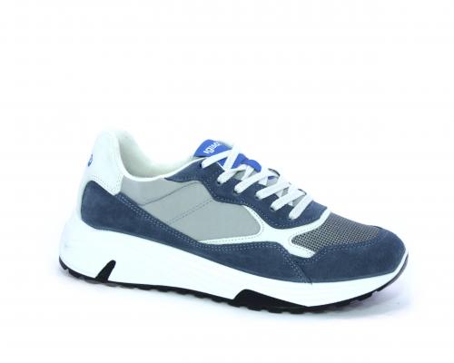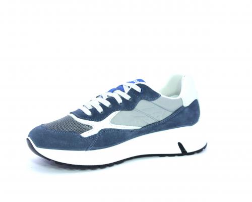 Sneakers allacciata, tomaia in nabuk e tessuto con inserti in pelle, sottopiede in pelle, fodera interna in tessuto, fusbet estraibile con memory foam.